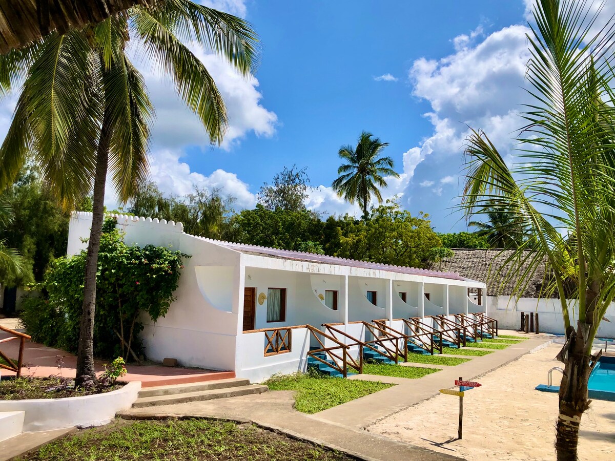 Փախեք դեպի մեր անխռով հյուրատունը, որը գտնվում է Զանզիբարի թփուտում ։ Երկու ընդարձակ և լուսավոր սենյակներ ունեն առանձին լոգասենյակներ, պատշգամբ/ ներքնաբակ և մուտք։ Սենյակներում առկա է մեծ չափսի մահճակալ՝ առավելագույն հարմարավետություն ապահովելու համար։ Օգտվեք մեր բացօթյա խոհանոցից, պարտեզից և ծածկված հանգստի գոտուց։ Մեր մարզասրահը մոտակայքում է (5 րոպե քայլելու հեռավորության վրա)։ Առկա են յոգայի, պարային, բռնցքամարտի և ֆիթնեսի դասեր։ Ռեստորաններով գեղեցիկ լողափը գտնվում է ոտքով 10 րոպե հեռավորության վրա ։ Զգացեք խաղաղություն և հարմարավետություն դրախտում ։