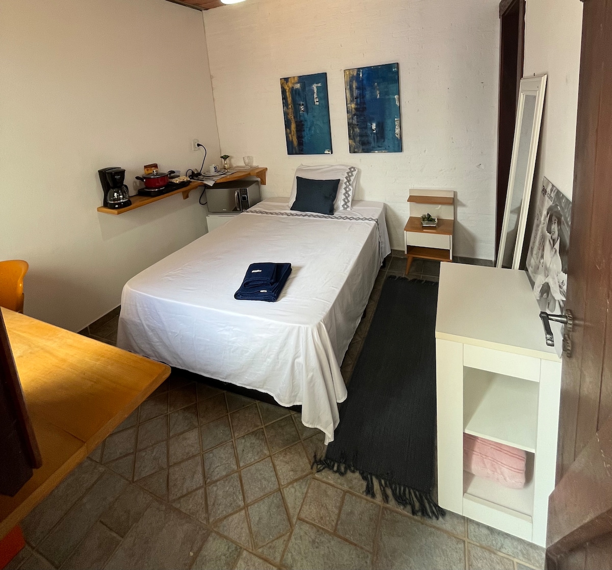 Մեր ստուդիայի բնակարանն իդեալական է ուսուցիչների, մագիստրոսի/դոկտորական թեկնածուների, ծնողների համար, որոնք գալիս են իրենց երեխաներին այցելելու կամ Կամպինասի շրջանում աշխատող մարդկանց համար: Գտնվում է Unicamp - ի մուտքից ընդամենը 260 մետր հեռավորության վրա ։ Հարմարավետ մահճակալ և խնամքով ձևավորված միջավայր ՝ օդորակիչով թարմացնող գիշերային քուն ապահովելու համար ։ Կերակուրները պատրաստելու համար խոհանոց ՝ միկրոալիքային վառարանով, սառնարանով, գազօջախով և բոլոր պարագաներով ։ Սմարթ հեռուստացույց, որը կարող եք հանգստանալ երկարատև սովորելուց կամ աշխատելուց հետո ։