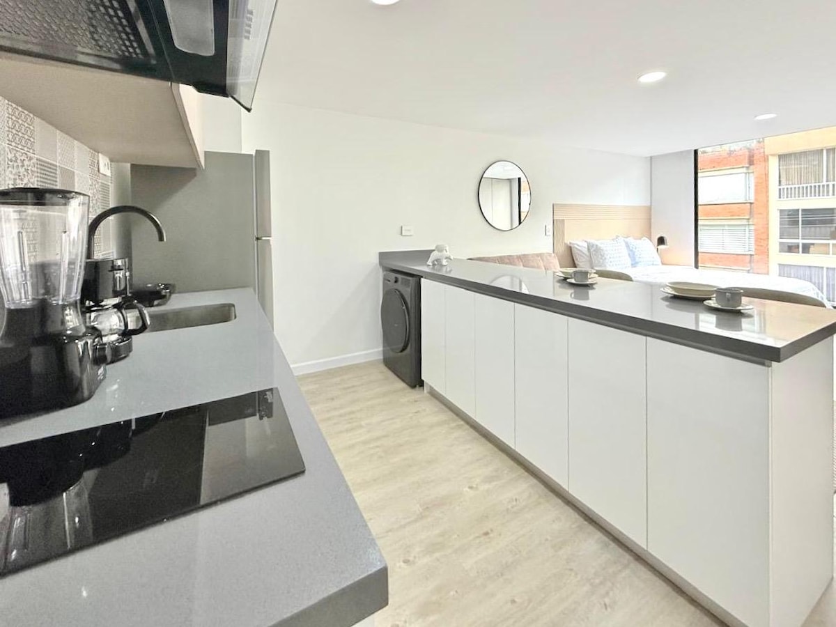 Բոլորովին նոր բնակարան, որտեղից բացվում է հիանալի տեսարան դեպի Բոգոտա և լեռներ ՝ ութ հարկից ։ Ժամանակակից, սկանդինավյան և մինիմալիստական ոճ ՝ հարմարավետ մասնավոր տեռասով, որը կատարյալ է խորովածի և ընկերների կամ զույգի հետ հավաքվելու համար ։ Կենտրոնական դիրք ՝ Usaquen շուկային և ռեստորաններին մոտ, հեշտ հասանելիություն և տեղափոխում ։ Կատարյալ ընտրություն մեկ անձի կամ երիտասարդ զույգի համար: Բնակարանն ունի 1 ննջասենյակ, 1.5 սանհանգույց և ներառում է լվացքի մեքենա/չորանոց և սառնարան, առանձին ավտոկայանատեղի և անվտանգություն 24 ժամ: