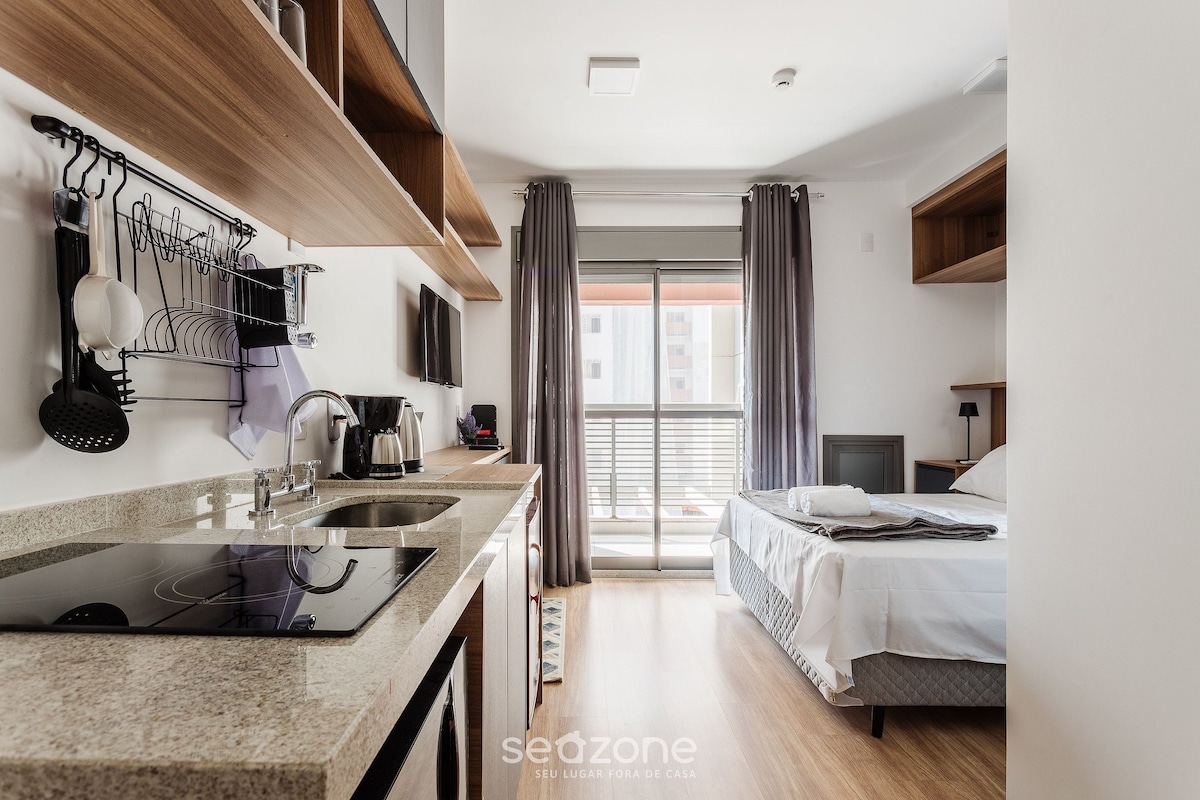 Բուտիկ - ստուդիա ՝ Սան Պաուլու քաղաքի ամենագեղեցիկ տեսարաններից մեկով ։ Տեղադրված է մետրոյից ոտքով 2 րոպե հեռավորության վրա ։ Լիովին կահավորված խոհանոց ՝ փայտե դռնից թաքնված սառնարանով ։ Wi - Fi, օդորակիչ և սմարթ հեռուստացույց ՝ 55 դյույմ ։ Ինքնուրույն ժամանում ՝ սմարթ էլեկտրոնային կողպեքով ։ Խաղացեք թենիս կամ մարզասրահ և հետո հանգստացեք լողավազաններում (բացօթյա կամ տաքացվող փակ) և սաունաներում (թաց կամ չոր )։ Ընդհանուր տարածքը ներառում է նաև համատեղ աշխատելու տարածքներ և լվացքատուն ։ Այցելուները պետք է նախկինում գրանցված լինեն դիմացի տարածքում ։