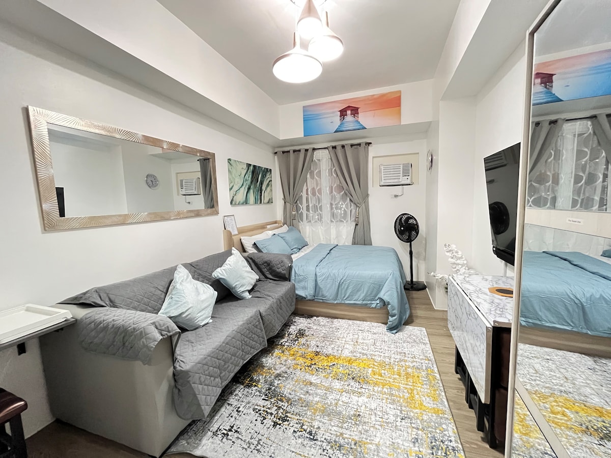Sun Residences համատիրությունում մենք ունենք բոլորովին նոր 1 ննջասենյակով հարկաբաժին ՝ ինտերիերի անհատականացված դիզայնով ։ Այն ներառում է հաճելի այցի համար անհրաժեշտ բոլոր պարագաները ։ Մոտակայքում են նաև Մանիլայի համալսարանի գոտին, հիվանդանոցները, ինչպիսիք են UDMC - ն և Saint Luke's - ը, և հասարակական տրանսպորտը ։ Զույգերը, հետազոտողները և բիզնես ուղևորները բոլորն էլ կվայելեն դա ։