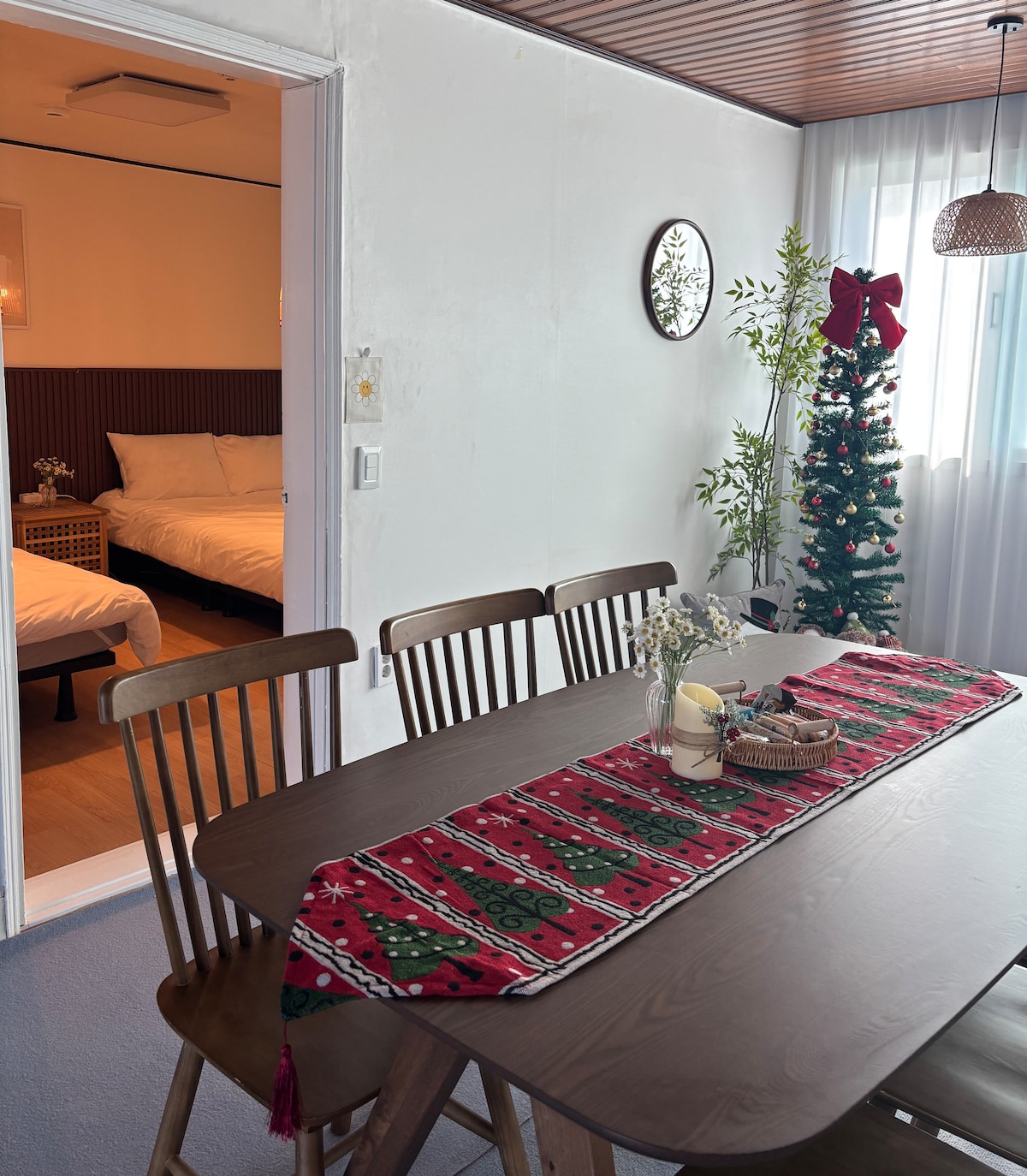 50평단독주택#크리스마스트리#방3개#침대5개#4~10인#주차무료#레트로감성숙소#코코하우스