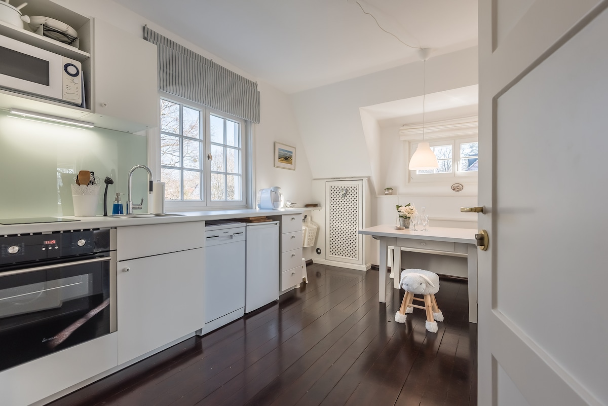 Բացահայտեք այս սիրով վերանորոգված փոքրիկ լոֆթը հմայիչ քաղաքային վիլլայի վերին հարկում (կառուցվել է 1929 թվականին), որտեղ Վիլհելմինյան ոճը համապատասխանում է արդիականությանը ։ Վայելեք նորաոճ միջավայր ՝ շքեղ կահավորանքով և դիզայնի տարրերով, երկտեղանի մահճակալով և երկտեղանի դռներով, որոնք անհրաժեշտության դեպքում կարող են բաժանվել ։ Բազմոցը կրկնապատկվում է որպես մահճակալ ՝ ապահովելով լրացուցիչ հարմարավետություն ։ Մինիմալիստական խոհանոցիկ և լոգասենյակ ։ Ձեր բացառիկ հանգիստը վերին հարկում ՝ ամեն ինչ ձեզ համար ։