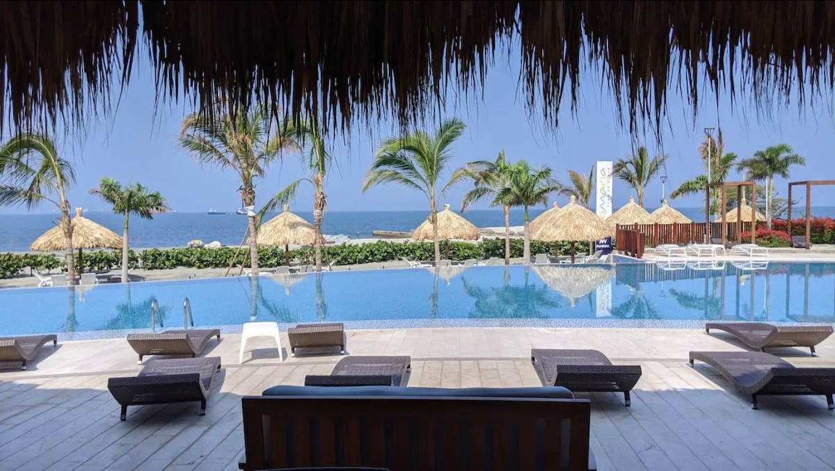 Espectacular Apto para que tu estadía sea inolvidable. Ubicado en las mejores playas de Santa Marta (Pozos Colorados) y en el mejor condominio de la zona, más lindo y completo q un hotel, con vista lateral al mar, playa privada, salida directa al mar, GYM, 4 piscinas, piscina infinita al mar, 18 jacuzzis, 2 saunas, 2 turcos, salon de juegos, cancha de squash, parques para niños y mucho más IMPORTANTE LEER LA DESCRIPCIÓN ANTES DE RESERVAR *MANILLAS* mas de 200 calificaciones con 5 estrellas.
