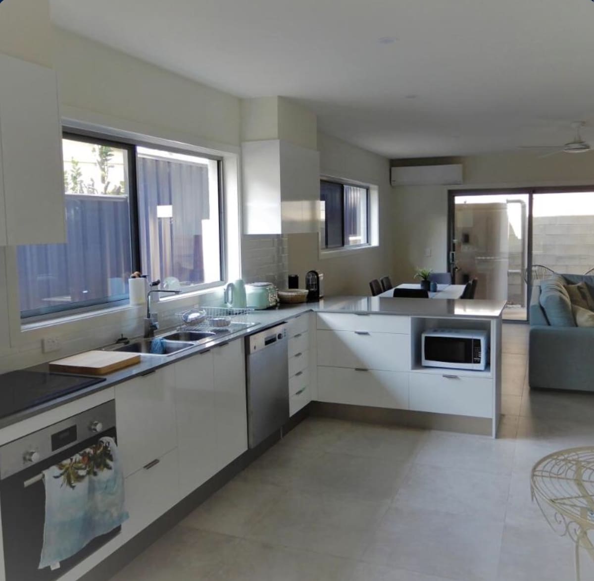 "Behind the Wall" is a Tuscan inspired getaway situated within walking distance of the shopping centre of Urunga, the boardwalk and beach and the Wetlands Boardwalk. As you enter Behind the Wall you will set foot in a Tuscan inspired garden complete with espaliered fruit trees and outdoor dining. The two bedroom house is an original hundred year old home recently renovated to honour it's original character. The kitchen and bathrooms are purpose built to accommodate the needs of guests.