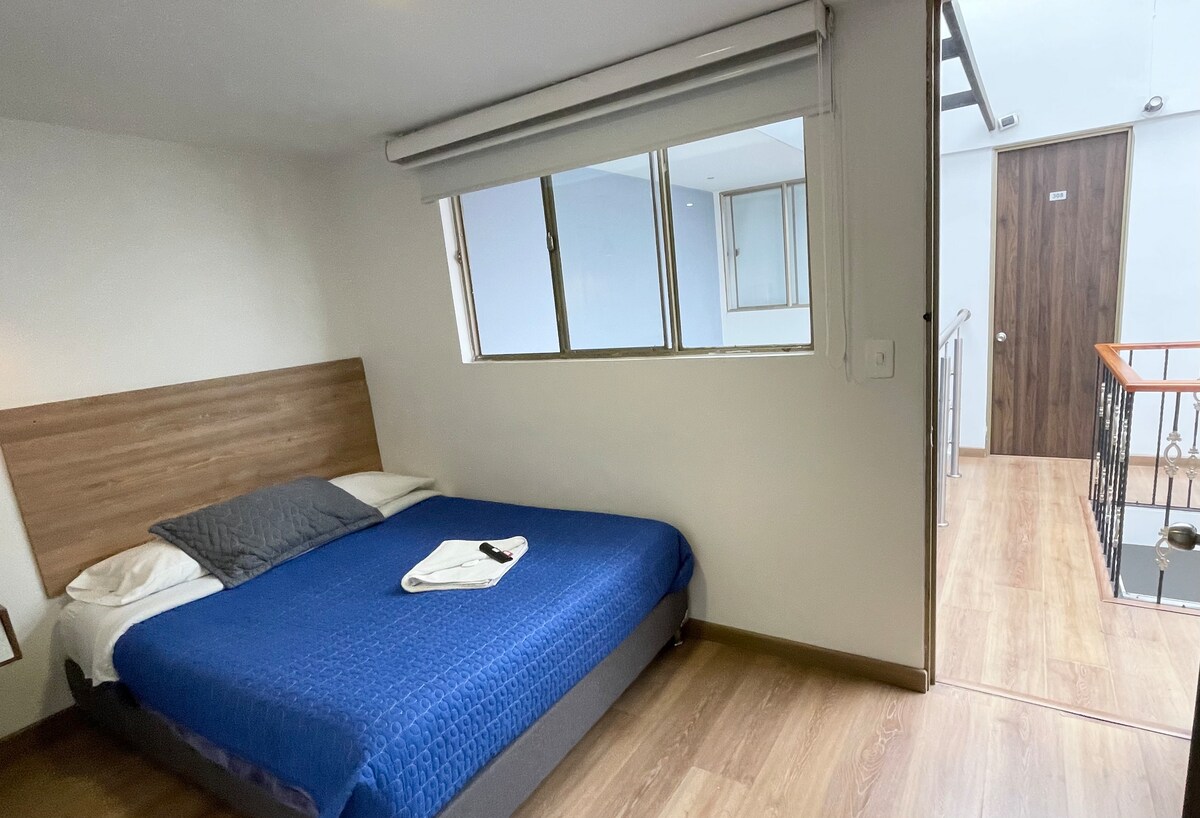 Enjoy a peaceful stay in this charming Bogota studio. It features a double bed and a foldable bed, a private bathroom with a dedicated walk-in shower, and a fully equipped open-plan kitchen to make you feel at home. Includes a private washer-dryer, a dining table for four, and all necessary utensils. Guests have access to premium common areas such as a coworking space, gym, dining zone, billiards, ping-pong, jacuzzi, and a beautiful event lounge. Just a few minutes’ walk from Parque 93