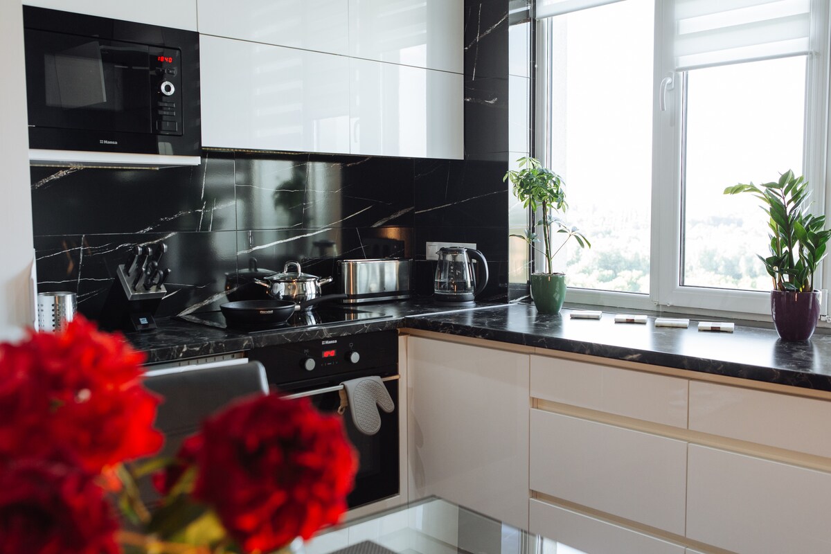 Հանգստացեք Քիշնևի սրտում գտնվող, մարմարով և բնական փայտով հարդարված էլեգանտ բնակարանում։ Դուք կվայելեք պրեմիում դասի Vi-Spring Bedstead ներքնակը, ընդարձակ լոգարանն ու պատշգամբը՝ դեկորատիվ բուխարիով։ Բնակարանում կան հեռակառավարվող վարագույրներ և սուրճի հատիկներով էսպրեսո սարք Շենքում գործում է շուրջօրյա ընդունարան և անվտանգության ծառայություն, որոնք ձեզ լրացուցիչ անվտանգություն, հարմարավետություն և հանգստություն են ապահովում ձեր ամբողջ այցի ընթացքում։