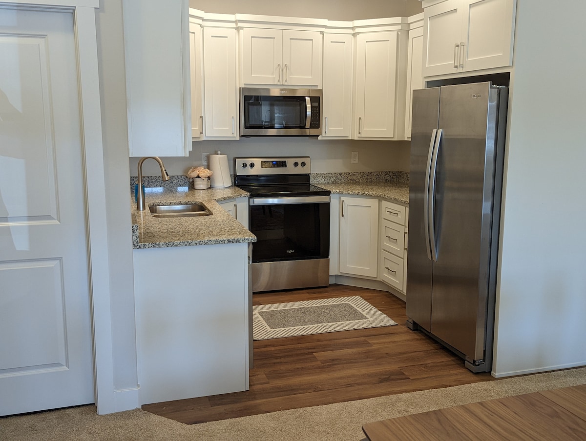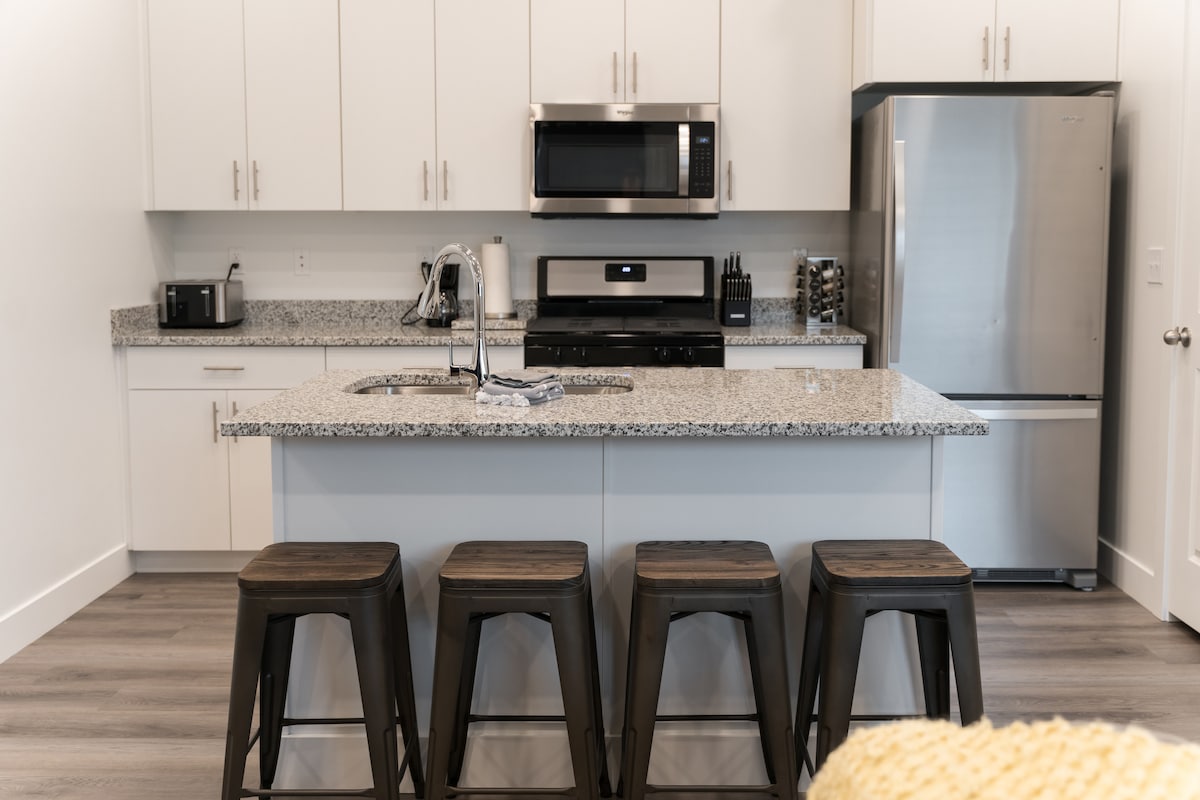 Enjoy our all new furnished suite with a private entrance and off street parking in a beautiful mature neighborhood. Our cozy comfortable great room includes a 50 in TV with 285 channels and Roku. Enjoy the remote controlled electric fireplace with awesome colors and adjustable thermostat. Cook at home with a kitchen ready for any meal. Charge your electronics with a USB and USB-c charging Outlet. If your looking for more privacy head to the quiet master bedroom and turn the second TV.