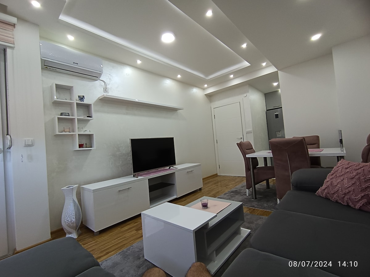 🏡 Topao i moderan stan za ugodan boravak Uživajte u prijatnom i lepo uređenom stanu koji odiše toplinom i komforom. Dnevni boravak sa udobnom ugaonom garniturom i ambijentalnim svetlom idealan je za opuštanje, dok je moderna kuhinja potpuno opremljena za sve vaše potrebe. Dekorativni detalji, biljke i topli tonovi stvaraju prijatnu atmosferu, a klima obezbeđuje komfor tokom cele godine.