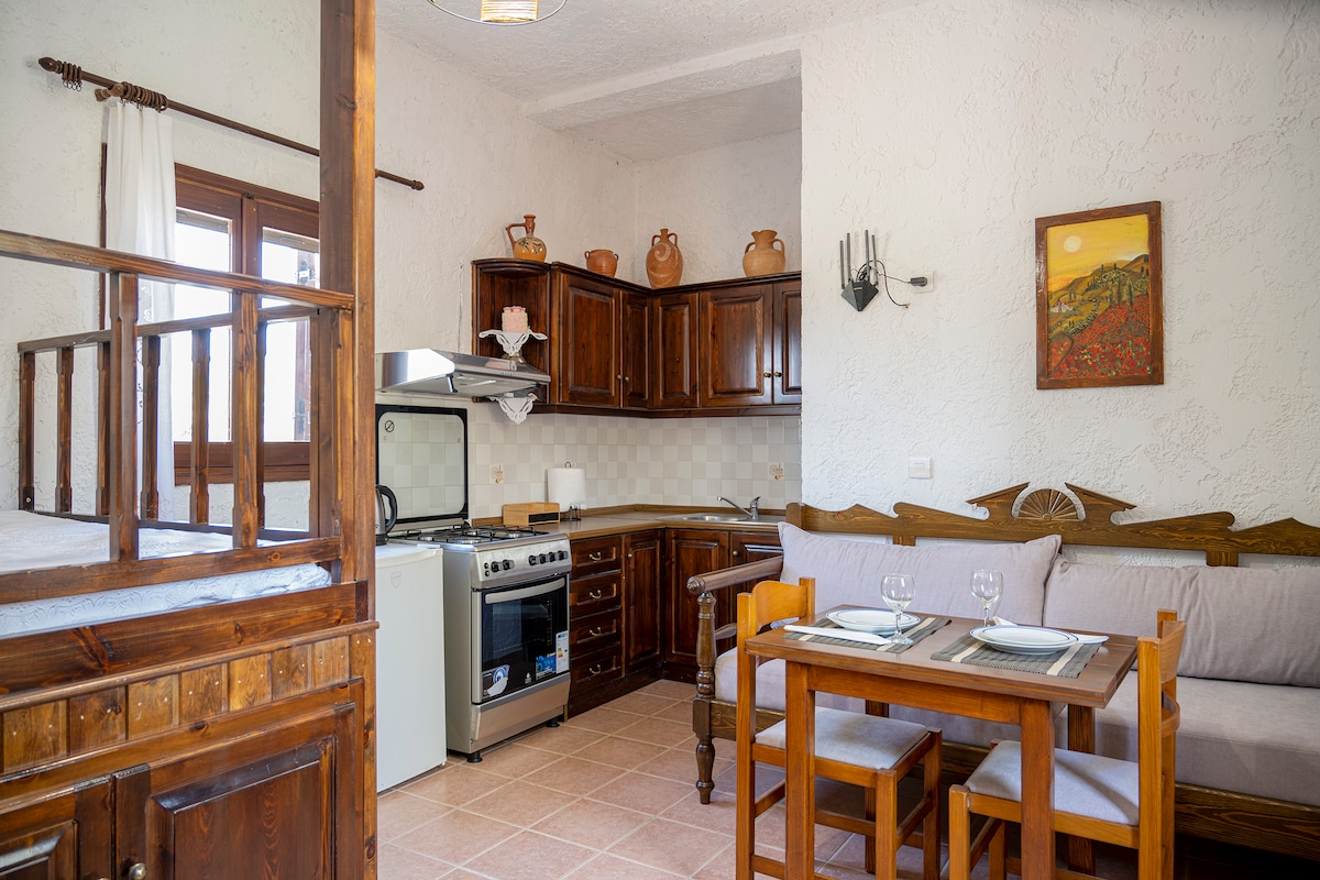 Παραδοσιακό ανακαινισμένο χωριάτικο αγροτικό σπίτι, σε μικρό οικισμό, στην κρητική ύπαιθρο με θέα στη θάλασσα. Οι επισκέπτες μπορούν να απολαύσουν την ηρεμία και τη γαλήνη της κρητικής φύσης, μακριά από τον θόρυβο και την πολυκοσμία του μαζικού τουρισμού. Το χωριάτικο κρητικό σπίτι είναι γεμάτο με ιστορία και παράδοση. Η διαβίωση σε αυτό προκαλεί τον επισκέπτη να φανταστεί την καθημερινή ζωή των κρητικών παλαιότερων γενεών και τις τοπικές παραδόσεις.