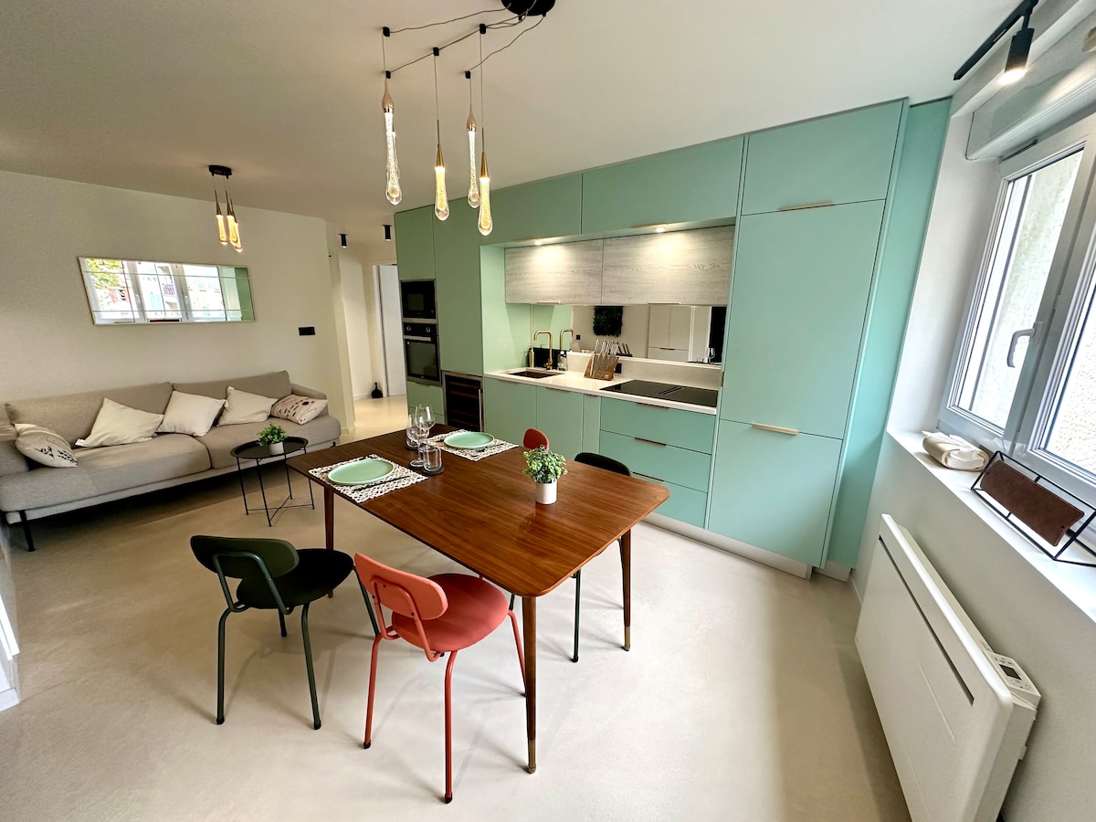 Հանգստացեք այս հանգիստ և ոճային տանը հենց Վեյսոն լա Ռոմաինի կենտրոնում Օդորակիչով բնակարանն ամբողջությամբ վերանորոգված է Մեզանինով մահճակալը և թախտը տեղավորում են 2 - ից 4 հոգու ։ Խոհանոցը հագեցած է ՝ Ինդուկցիոն ափսե Ամանալվաց մեքենա Միկրոալիքային վառարան Տաք ջրի թեյնիկ: Nespresso Հեռուստացույց ՝ ինտերնետային արկղի ալիքներով ։ Ժամանման և մեկնման ճկուն ժամեր ։ Կարող եք անվճար կայանել կարճ հեռավորության վրա Տնային մաքրություն բնակչի հաշվին կամ լրացուցիչ վճար