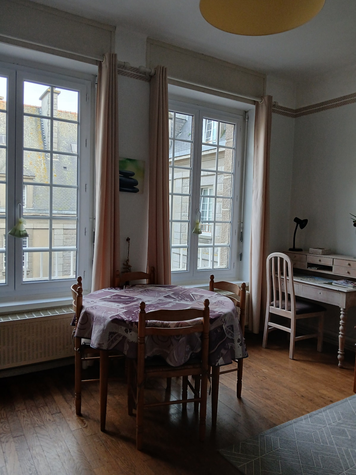 Sur la place du village de St-Suliac, l'un des plus beaux villages de France, un cocon pour vos vacances ou séjours créatifs. Juste en face de l'épicerie, à qq mètres de la boulangerie, de la brocante, de l'office de tourisme, de l'église, de la plage et des cafés-restaurants. Hyper central ! C'est l'atelier d'artiste de Virginie Bregeon qui habille chaque pièce d'objets chinés aux couleurs de la Bretagne et invite de grands artistes bretons (Mathurin Méheut, Henri Rivière) sur les murs...