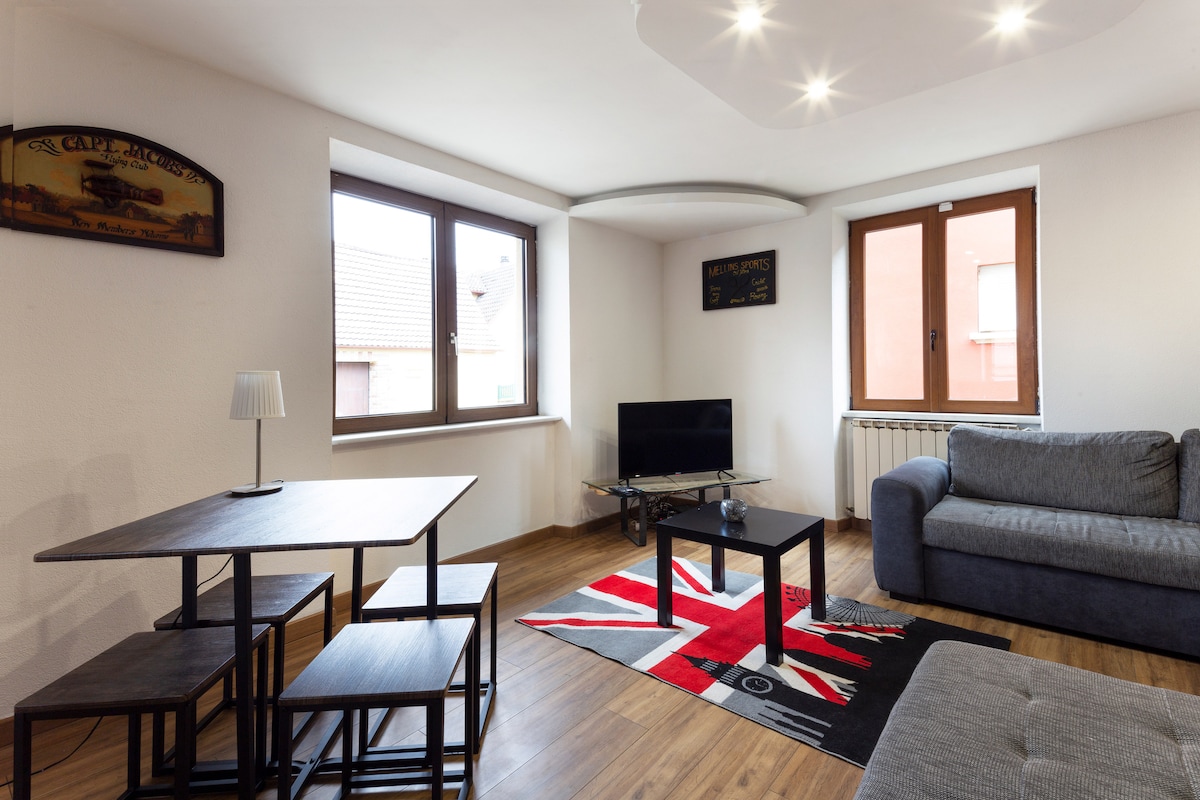 Հարմարավետ բնակարան Հագուենաու քաղաքի կենտրոնում ՝ հետիոտնային տարածքի եզրին ։ Տարածքը գտնվում է կայարանի մոտ (5 րոպե քայլելով )։ Դուք կարող եք շատ հեշտությամբ հասնել Ստրասբուրգ 30 րոպեում, ԱՌԱՎԵԼԱԳՈՒՅՆԸ: Աշխատանքային օրերին օրական մոտ 40 կլոր ուղևորություն կա, իսկ հանգստյան օրերին ՝ մոտ քսան ։ Բնակարանը հնարավորություն է տալիս օգտվել Հագուենաուի կենտրոնի կողմից առաջարկվող բոլոր հարմարություններից ։