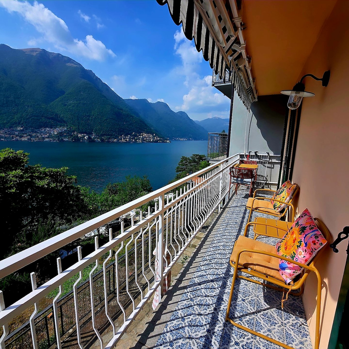 Elegant apartment situated not in the city centre with magnificent views of the city and the lake. Five minutes by car from highway, city center and Swiss border. Stores, bars, supermarket and public transport stops (buses) nearby. Starting point to visit Villa Balbianello,Villa Carlotta and its magnificent park,Tremezzo,Bellagio and its shores and discover the magnificent villages of the lake. Ideal for spending time relaxing surrounded by nature. Fenced parking space,elevator and wifi.