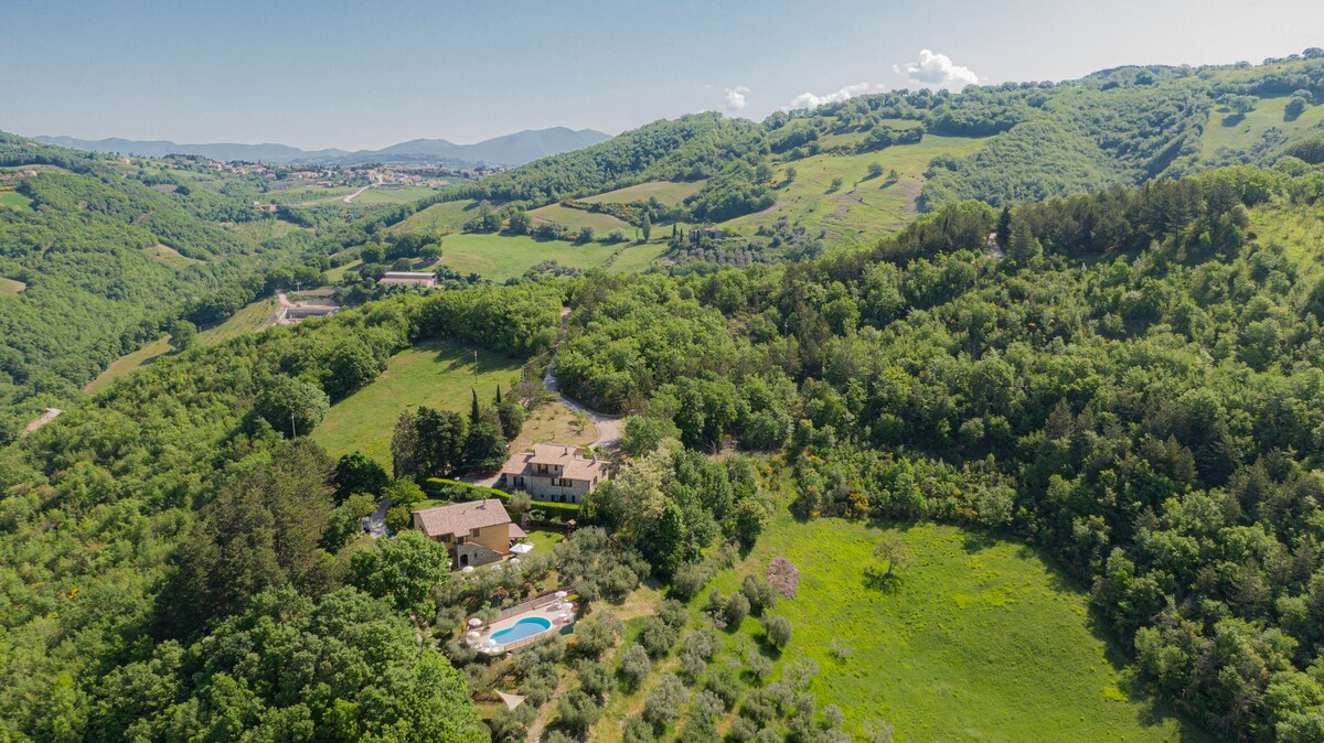 Villa privata immersa nel 🌿verde umbro, ideale per chi cerca spazio, privacy e autenticità. 📍A 20 minuti da Assisi, Perugia, Gubbio e Spello ,offre ambienti caldi e silenziosi pensati per vivere il tempo con calma. ✔️4 suite matrimoniali indipendenti con bagno privato, ampi saloni con camino, grande cucina conviviale e giardino riservato. 💎Possibilità di arricchire il soggiorno con esperienze su misura: chef a domicilio, degustazioni, tartufo, benessere e tour privati, private driver.