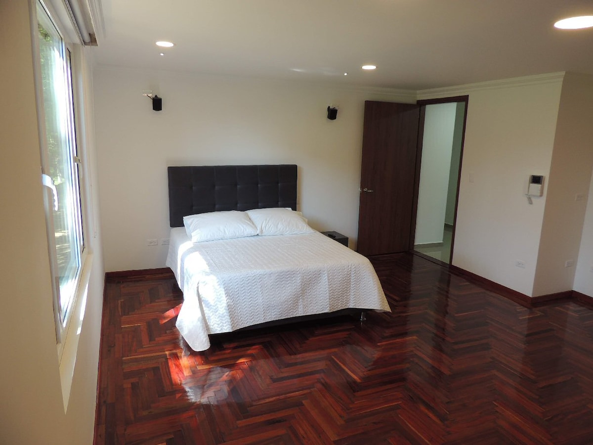 Habitación espaciosa equipada con 1 cama doble, sabanas, aire acondicionado, internet fibra óptica 400mb, TV, armario, nevera, baño privado, agua caliente, toallas y jabón para cuerpo y manos. Alojamiento ubicado en la zona mas exclusiva de Cali. Cerca a las mejores zonas rosas como El Peñon, San Antonio y Granada. Cerca a atractivos turísticos como el Zoológico, El Gato de Tejada y el Boulevard del Rio.