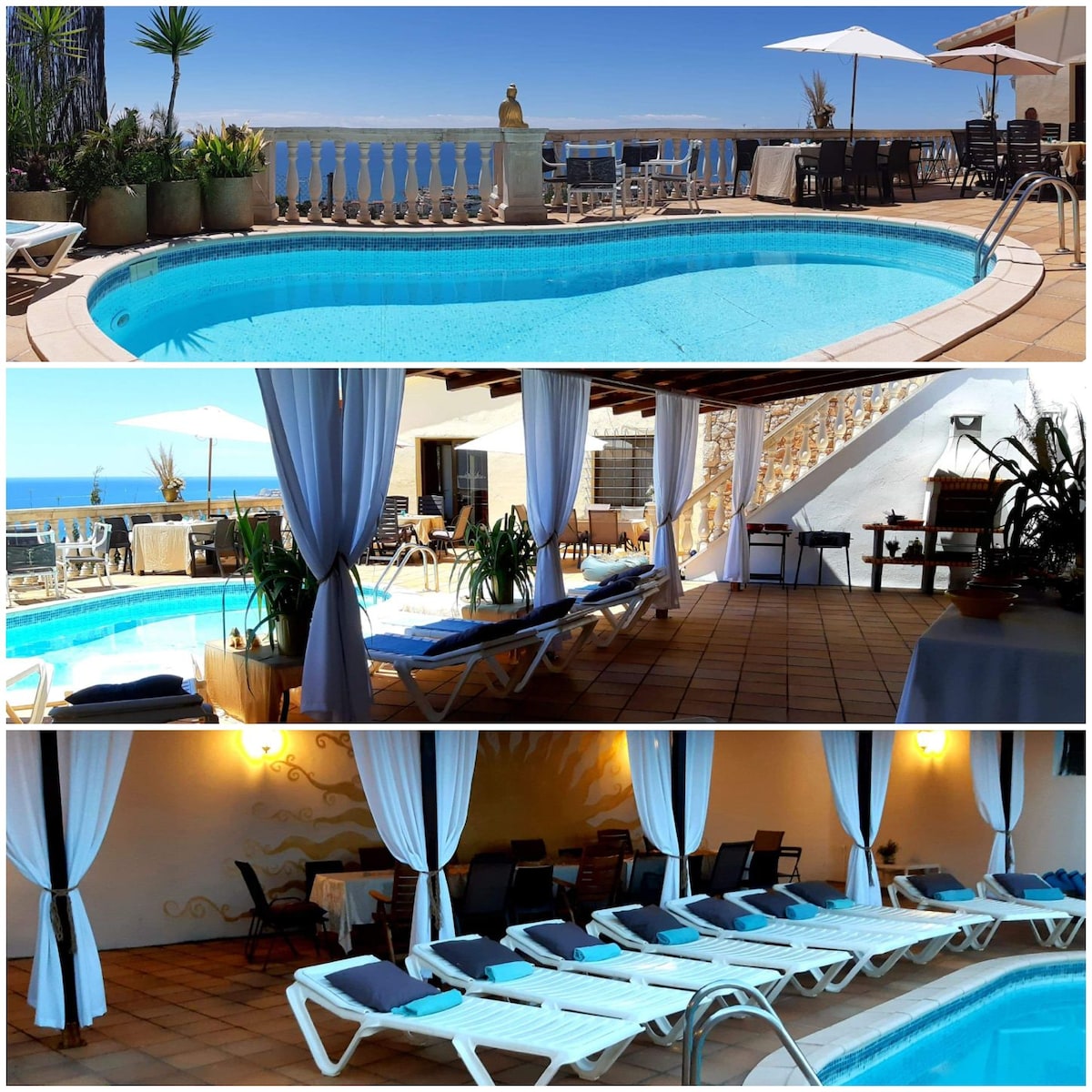 Բարի գալուստ Սիտջեսի լավագույն տարածքում գտնվող մեր փոքրիկ դրախտ ։ Մենք փոքրիկ B&B ենք ՝ ընդամենը 2 առանձնաբաժնով/ապարտամենտով և 2 ննջասենյակով մեկտեղանի/երկտեղանի ։ Բոլորը շատ տեղ ունեն հեռավորություն ունենալու և անվտանգ պահելու համար: Մեր ննջասենյակներում կան ընդհանուր լոգասենյակ և զուգարաններ, որոնք ամեն օր մաքրվում և ախտահանվում են ։ Համայնքի տարածքն օգտագործվում է առավելագույնը 10 անձի համար ։ Հեշտ խոհարարություն կարելի է պատրաստել մեր հիմնական խոհանոցում, որը հյուրերը կարող են օգտագործել նաև մեր խորովածը լողավազանի տեռասում: Տնական սնունդ և նախաճաշ կսպասարկվի ըստ պահանջի ։
