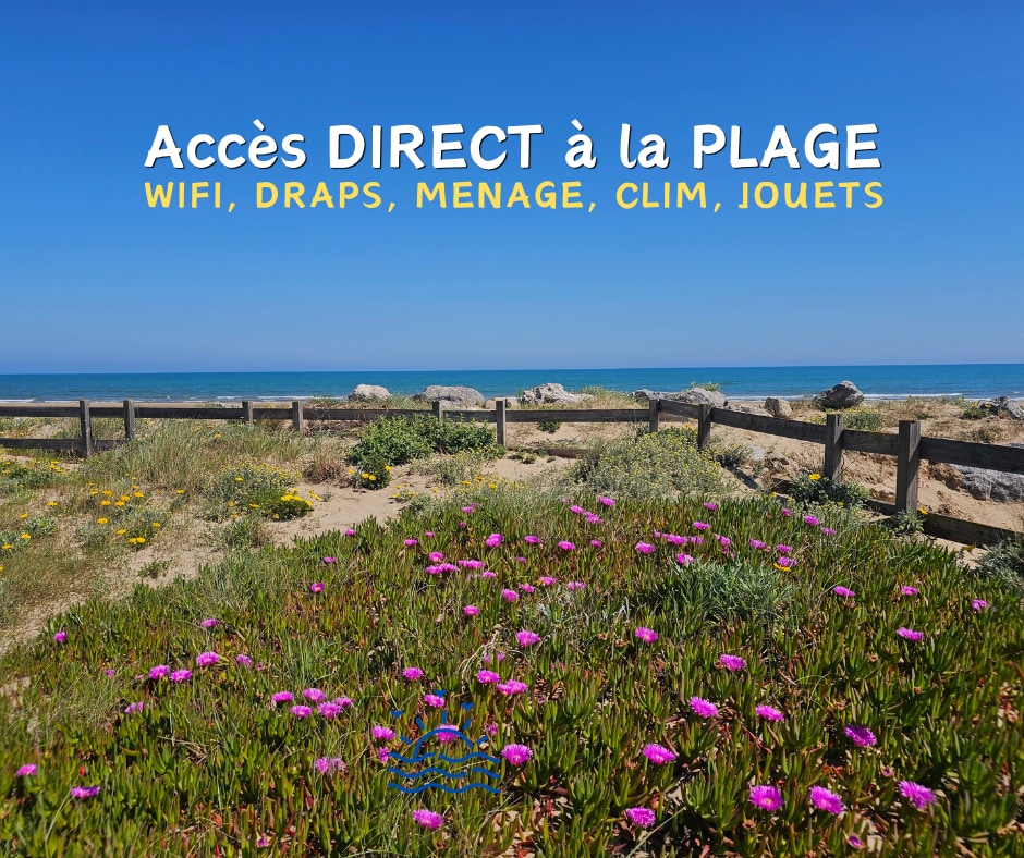 Լողափից 50 մետր հեռավորության վրա, հանգիստ տարածք Մոտ 55մ ² մակերեսով բնակարան ՝ բաղկացած երկու ննջասենյակից, հարավում գտնվող կտուրից և հյուսիսում գտնվող բակից ։ Wi-Fi (օպտիկամանրաթելային), օդորակիչ, հեռուստացույց ծնողների սենյակում, լվացքի մեքենա, մասնավոր կայանատեղի, սպասք լվացող մեքենա, խորոված, բացօթյա ցնցուղ... Մահճակալի չափը ՝ 1 մահճակալ (140 x 190) 2 մահճակալ (90x190) Անկողնային սպիտակեղեն և սրբիչներ չեն տրամադրվում ։