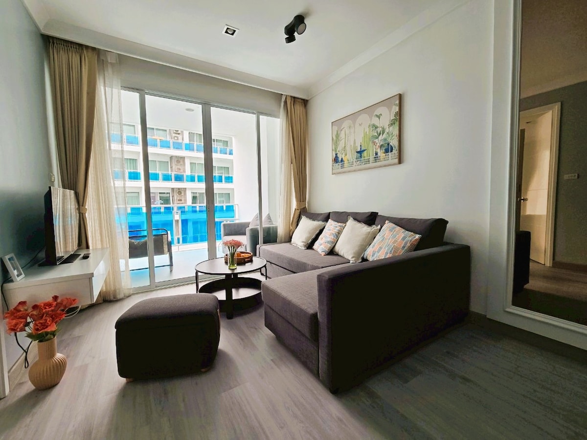 Welcome to a stylish newly built one bedroom condo. Fully furnished with modern luxury with pool view. The cozy bedroom prepare with fully comfort king bed mattress. The space offer a brand-new kitchen equipment. There are 2 smart TVs for living and bedroom. The room space is 50 sq.m. short walk to the beach, Cicada market and tamarind market. Many restaurants nearby. Wifi max speed with 300/300 mbps. Nespresso coffee machine provided. This room is perfect for your leisure or business.