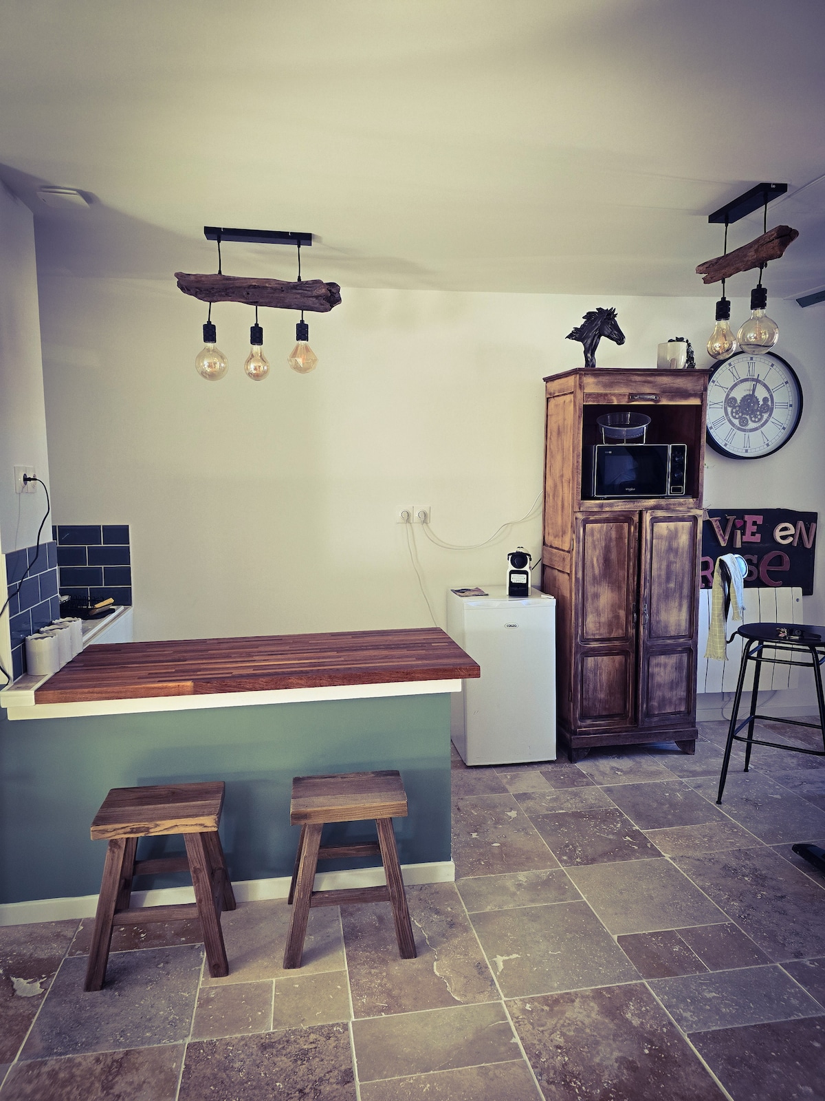 Մենք ողջունում ենք ձեզ մեր անկախ ստուդիայում (մեր տնից առանձնացված մեծ ամբարով) մի քանի րոպե հեռավորության վրա գտնվող մասնավոր մուտքով: Հանգիստ, դուք կունենաք այն ամենը, ինչ անհրաժեշտ է հարմարավետ երկրի հանգստի համար: Մոտ 30 մ2 մակերեսով այս ստուդիան ունի իր խոհանոցիկը, լոգասենյակը և առանձին զուգարանը: Զբոսնելով գյուղական վայրերով և կից կտուր վայելելը կօգնի ձեզ գտնել ձեր փնտրած խաղաղությունը ։ Ի ՞ նչ պատրաստել թեյ և սուրճ ՝ ձեր այցը բարելավելու համար ։