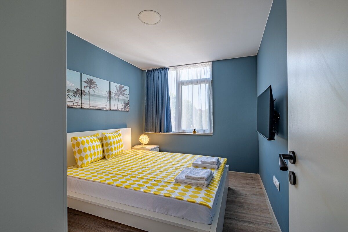 Հարմարավետ և ժամանակակից ստուդիան առաջարկում է գեղեցիկ և հարմարավետ երկտեղանոց մահճակալ, նիստերի դահլիճ/ճաշասենյակ, խոհանոցիկ և լիովին կահավորված լոգասենյակ: Վառնայի հենց սրտում գտնվող Դոլչե Վիտան ընդամենը մի քանի րոպե հեռավորության վրա է գտնվում լողափից, Ծովային այգուց և «Սև ծով» էպիկական հյուրանոցից: Շրջապատված լինելով բացառիկ ռեստորաններով, բարերով, սպորտային և առևտրի կենտրոններով ՝ DOLCE VITA - ն ձեր լավագույն ընտրությունն է Վառնայում հաճելի հանգստի կամ գործնական ուղևորության համար: