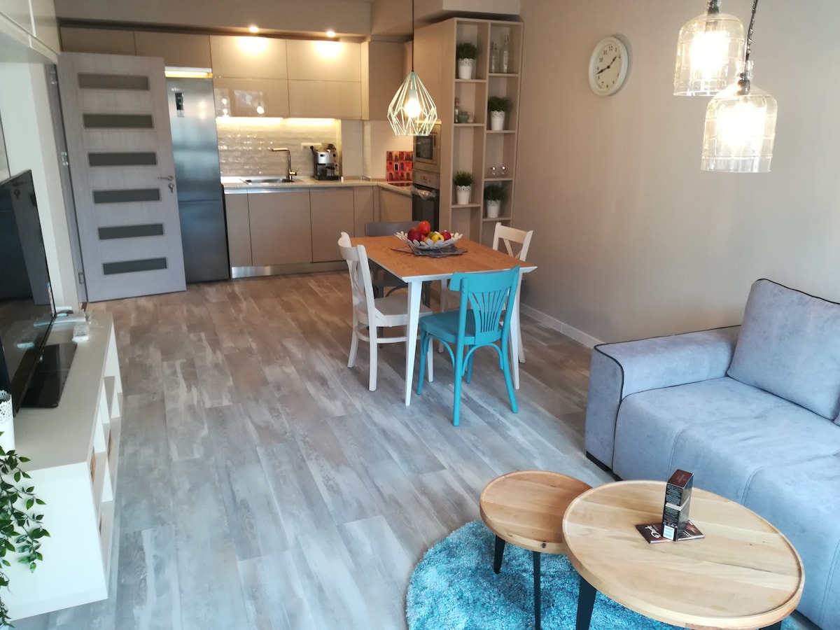 Բոլորովին նոր 2 սենյականոց բնակարան Վառնայի հիմնական հետիոտնային գոտուց ընդամենը 1 րոպե հեռավորության վրա ։ Վայելեք նորաոճ ինտերիեր, լիովին կահավորված խոհանոց և առանձին փակ ջակուզի, որը կատարյալ է մեկ օր հանգստանալուց հետո: Կատարյալ է զույգերի, ընտանիքների կամ բիզնես ուղևորների համար ։ Արագ Wi - Fi, A/C յուրաքանչյուր սենյակում և բոլոր հարմարությունները քաղաքի սրտում հիանալի հանգստի համար: Բնակարանը գտնվում է առաջին հարկում 2 անվճար կայանատեղ 🅿️ 🚗 🚙