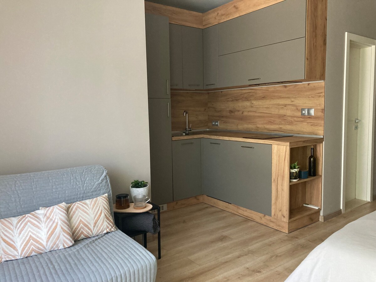 ALLURE VARNA studios are one-room luxuriously furnished studio apartments in the AZUR PREMIUM complex. The apartments have a fully equipped kitchen - oven, microwave, coffee machine, toaster, kettle, refrigerator, necessary utensils, washing machine, large double bed, as well as a pull-out armchair for a third person, TVs with 250 TV channels of excellent quality, high-speed free WIFI internet, wardrobe, table and chairs, veranda, Private modern bathroom. Internal paid parking with warm connecti