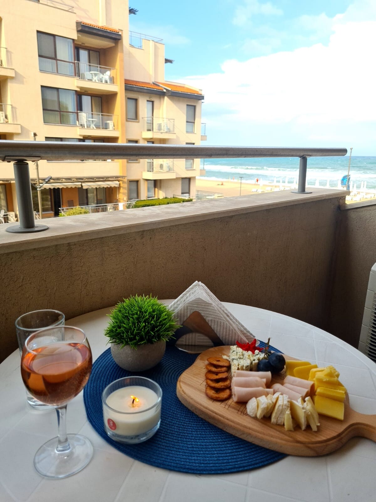 Lovely, luxury apartment for rent on the beach in Byala - 80 m from the beach. The apartment offers 1 bedroom, a living room with a fully equipped kitchen, a terrace with a partial sea view, a bathroom with a shower cabin. In the complex you will use for free a large infinity pool, and a playground. Restaurants and shops are only 200 meters away. Quiet and comfortable place for a relaxing family vacation