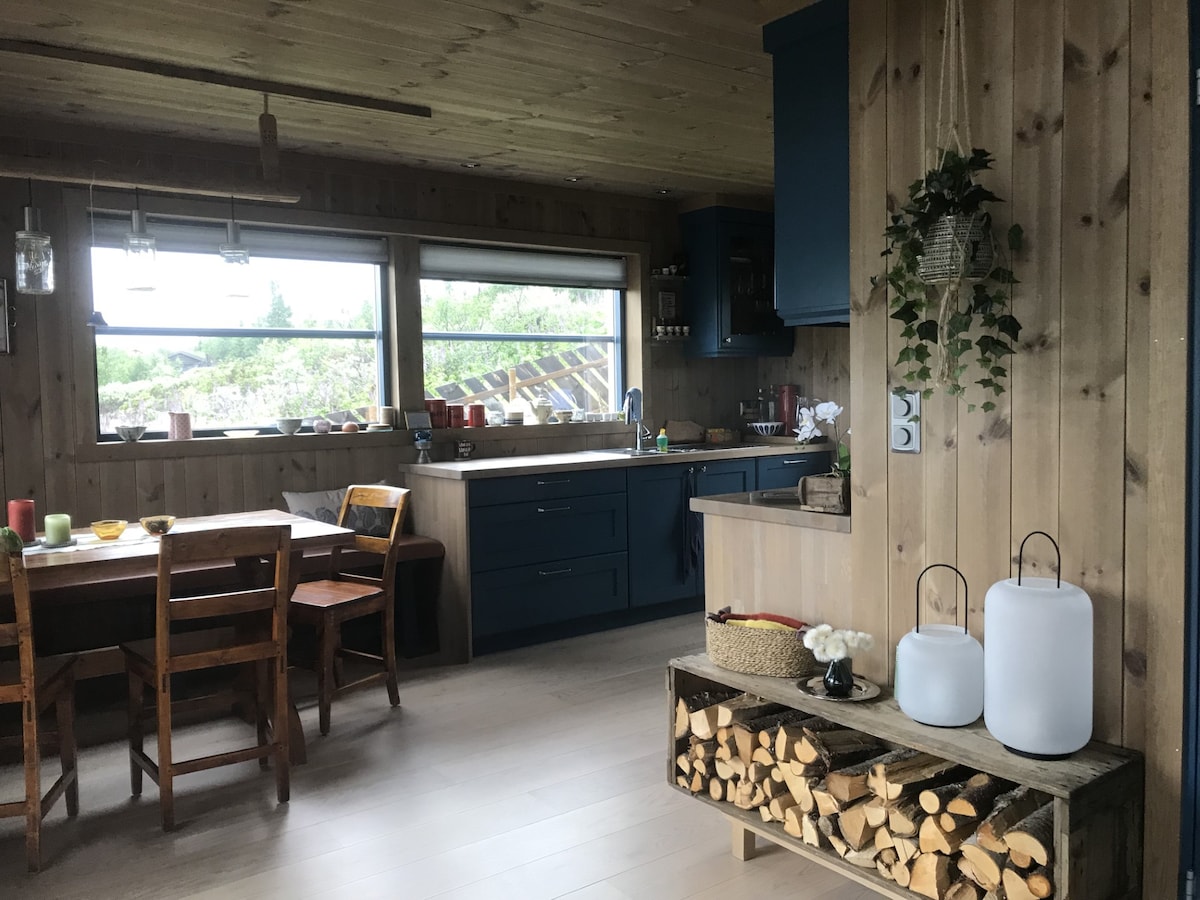 The cottage is located on a small hill, where you can enjoy a wonderful view of the mountains. Modern furnishings with all amenities, such as fully integrated appliances in the kitchen, fire place, and heating in all floors. Wifi and TV. Beitostølen is a walking distance away with all its offers and opportunities. Great hiking terrain and in the immediate vicinity of the cottage. Pets are allowed.