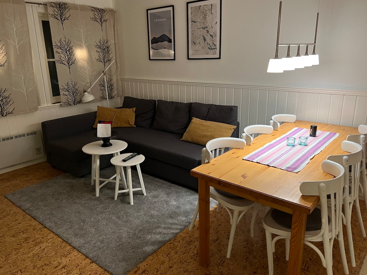 Մեր ժամանակակից 90 քմ մակերեսով եռասենյական բնակարանը կատարյալ է նրանց համար, ովքեր ցանկանում են հարմարավետ հանգիստ անցկացնել Ստորումանի Տյորնաբիում: Անկախ նրանից, թե դուք գալիս եք դահուկներով սահելու, որսի, ձկնորսության, սկուտեր վարելու, աշխատելու կամ հանգստի համար: Կենտրոնական տեղադրություն: Խանութից, լեռնադահուկային լանջերից, ձկնորսական լճերից և լեռնադահուկային հանգստի վայրերից քայլելու հեռավորության վրա է: Պատշգամբ՝ բացօթյա կահույքով և գեղեցիկ տեսարանով: Լավ կայանման հնարավորություններ սեփականության տարածքում: Ռադիո/հեռուստացույց Apple TV-ով՝ բջջային ցանցի միջոցով միանալու համար: Բարձրախոս՝ Bluetooth միացմամբ երաժշտություն լսելու համար: