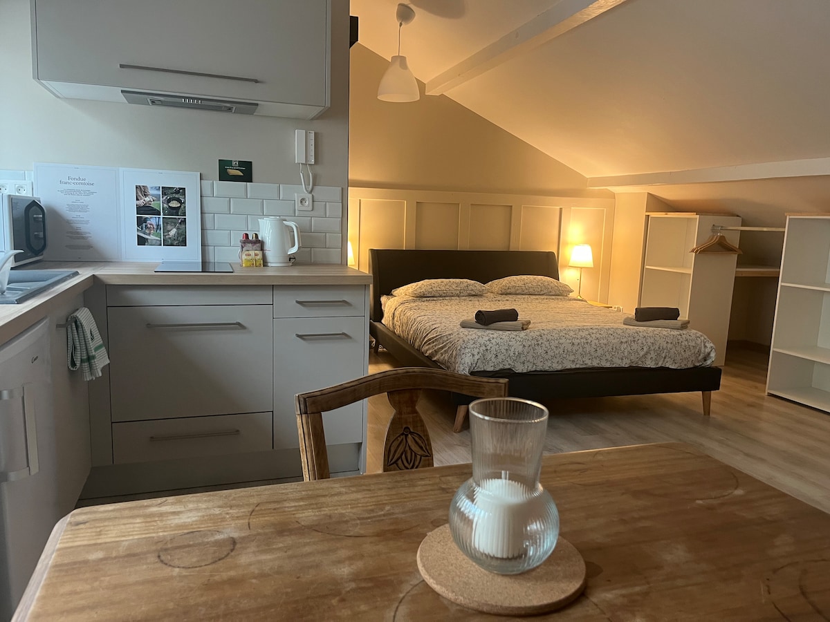 Suite de 45m2 indépendante sous-comble d'une maison de ville située à 140m du centre de la capitale du Comté. Profitez de la proximité du centre historique dans une rue calme de Poligny. Idéalement situé au coeur du Jura, vous êtes à mi chemin entre lacs, montagnes et vignes. Le logement dispose d'une cuisine équipée et d'une salle de douche indépendante. Machine à café Nespresso, TV connectée, WIFI, lit 160, four et machine à laver sur demande... Les draps et serviettes de bain sont fournis.