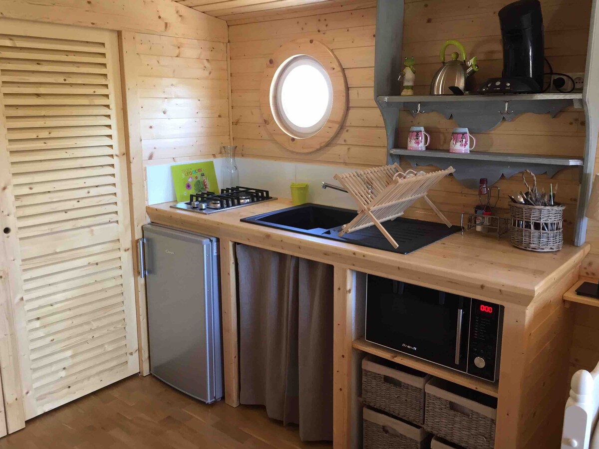 LES SABLES D'OLONNE - ից 15 կմ հեռավորության վրա և Պույ դյու Ֆուից 1 ժամ հեռավորության վրա մենք առաջարկում ենք գնչուական ավանդույթի համաձայն պատրաստված քոթեջի քարավան: Թրեյլերը կանգնած է լճակի վրա, որտեղ սագերն ու բադերը զարգանում են, հարակից մարգագետիններում արածում են այծեր, ո******ր, պոնիներ, անես: Ընդհանուր չափերի կցորդ ՝ 7մ20/2մ40/ ունի 2մ/1մ60 մահճակալ, ճաշասենյակ,խոհանոց,զուգարան,ցնցուղ, ճոպանուղի: Դրսում կա պարտեզի լաունջ տրանսատ և հովանոց .80 € մեկ գիշերվա համար նվազագույնը 2 գիշեր