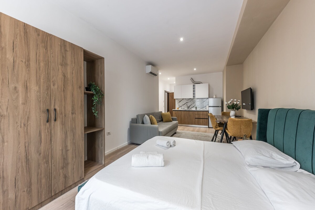 Զբաղվեք ծովափնյա խաղաղությամբ մեր հմայիչ առանձնատանը ՝ երեք հոգու համար ։ Արթնացեք Ադրիատիկ հիասքանչ տեսարաններով ձեր հարմարավետ մահճակալից, հետո հանգստացեք այս ժամանակակից առանձնատանը, որը նայում է դեպի շողացող ծովը: Վայելեք առանց դժվարությունների ինքնուրույն ժամանումը և երկշաբաթյա սպասարկման հարմարավետությունը ։ Վերելակի կարի ՞ ք ունեք ։ Մասնավոր փոխանցումները հասանելի են ձեր հեշտության համար ։ Սուզվեք ծովափնյա հեքիաթային հանգստի մեջ, ինչպես ոչ ոք ։ Marina Suites - ի մեր թիմը միշտ ձեր տրամադրության տակ է Դուրրեսում լավագույն խորհուրդների համար ՝ ձեր այցը հիշարժան դարձնելու համար: