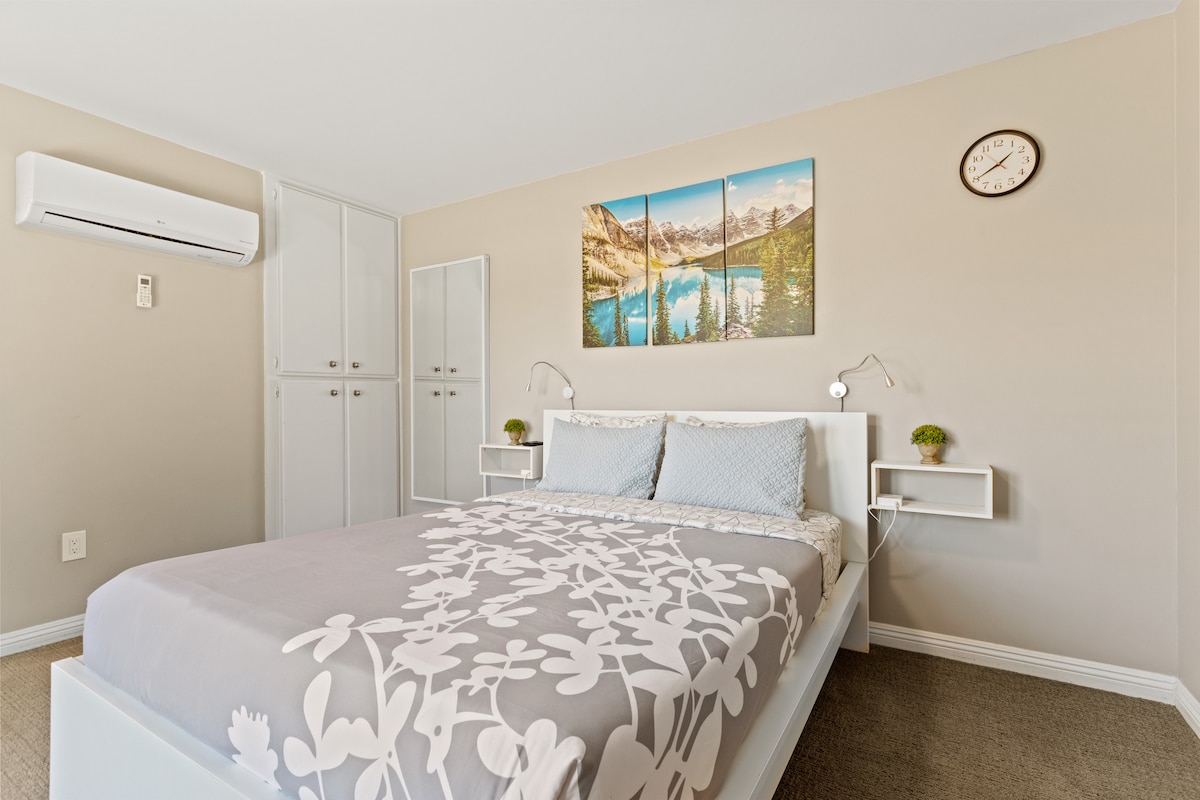 A separate entrance is a portal to a luxurious self-contained modern cottage in a secluded walled shared garden. Sliding glass pocket doors look over the lily pond and hummingbirds. The tree-shaded bedroom has cork floors for quiet comfort and a sliding wood panel door. The bathroom has a shower with floor to ceiling frosted windows, and there is a private rear deck. This contemporary modern suite features vibrant colors and artwork throughout. HEPA AIR FILTRATION 24HRS.
