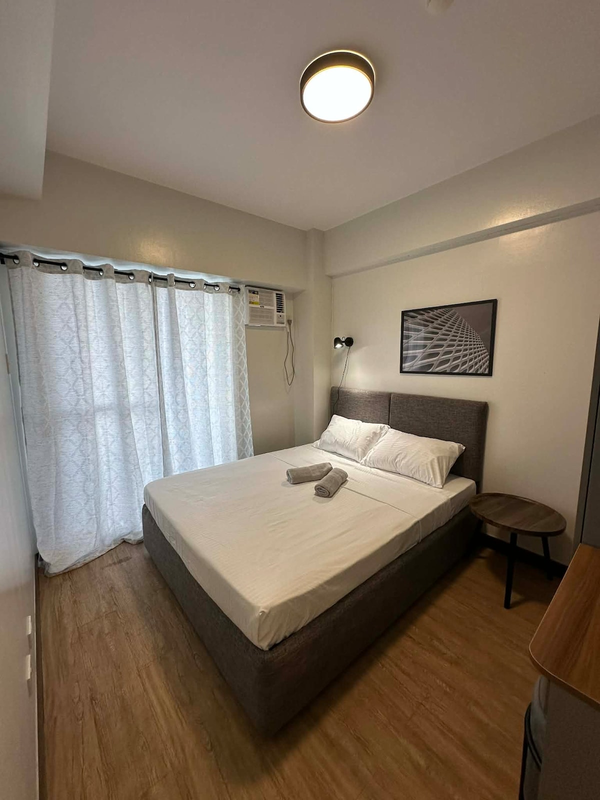 A newly renovated Japandi-style studio offering a quiet, comfortable stay in the city. The unit features natural light, warm wood finishes, a fully equipped kitchen, in-unit washer, high-speed WiFi, and Netflix. Located along Eco West Drive near SM City Davao, Davao Global Township (DGT), National University Davao, guests have access to secure facilities and swimming pool—ideal for business travelers or leisure stays.
