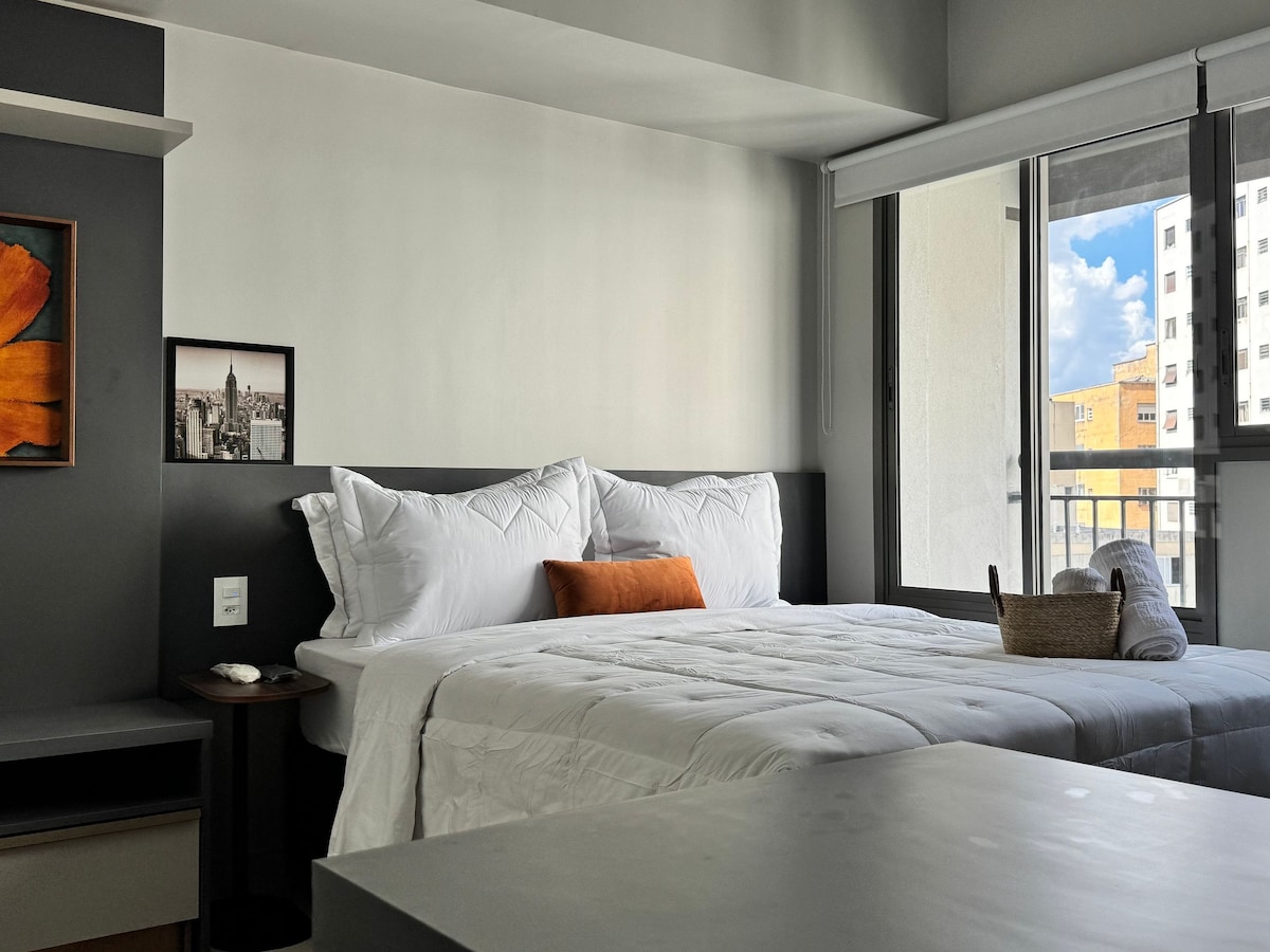 Նոր և հարմարավետ ստուդիա Պաուլիստա առևտրի կենտրոնի հարևանությամբ (50 մետր )՝ մետրոյի, տաքսու և ավտոբուսի կայարանների շրջակայքում: Դուք կլինեք քայլելու հեռավորության վրա ՝ մինչև հիմնական տորիստական ատոկները ։