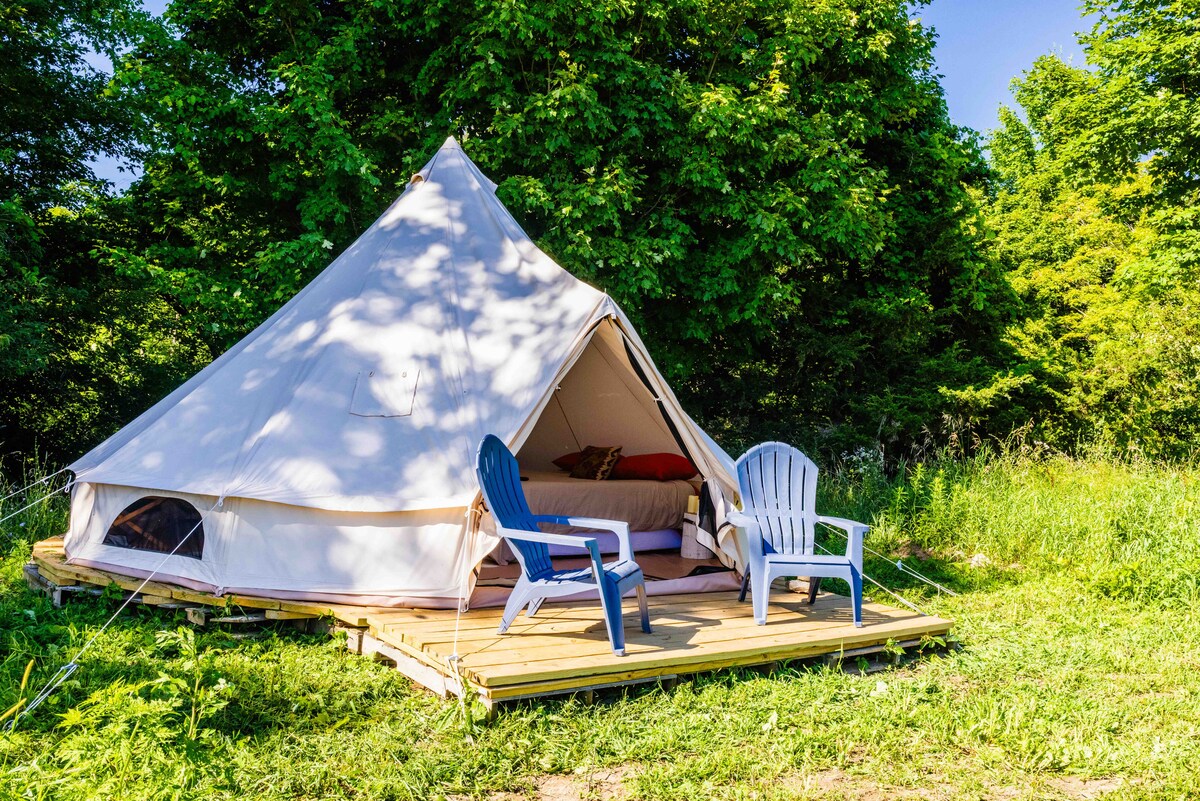 Գլեմփինգի հարմարավետ վրան մարգագետնում