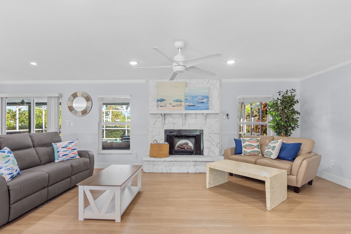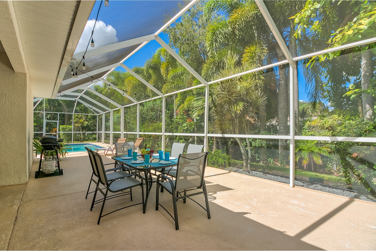 Թարմացված մասնավոր հանգստի տուն փակուղում գտնվող փոքր, շատ հանգիստ համայնքում. - Մասնավոր գլխավոր առանձնաբաժին ՝ երկտեղանի մահճակալ կամ առանձին նոր վերանորոգված լոգասենյակ(տե ՛ ս նկարները)՝ մասնավոր մուտք դեպի լողավազան - Ջեռուցվող լողավազան ՝ կլոր տարին -3 մեծ մահճակալ ՝ յուրաքանչյուրը 55 դյույմ հեռուստացույցով /1 երկհարկանի մահճակալով - Տան և լողավազանի շրջակայքի կանաչապատում ՝ մասնավոր հանգստի համար - Փակեք լողափը, շոփինգը, բեյսբոլի դաշտերը, կինոթատրոնը, ռեստորանները և Կենտրոնական Վերո լողափը: - Մեծ նստատեղ ՝ 75 դյույմ հեռուստացույց ՝ ուղիղ հեռարձակմամբ հեռուստատեսություն և հոսքային հեռարձակում ՝ 1000 Մբիթ/վ ինտերնետ