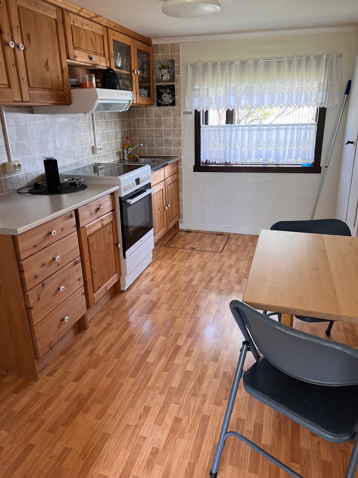 The studio apartment is in the garage next to a one story house with a private entrance. It has a double bed of 160 cm, a kitchen and a bathroom. The apartment is all newly renovated and all furniture are new.