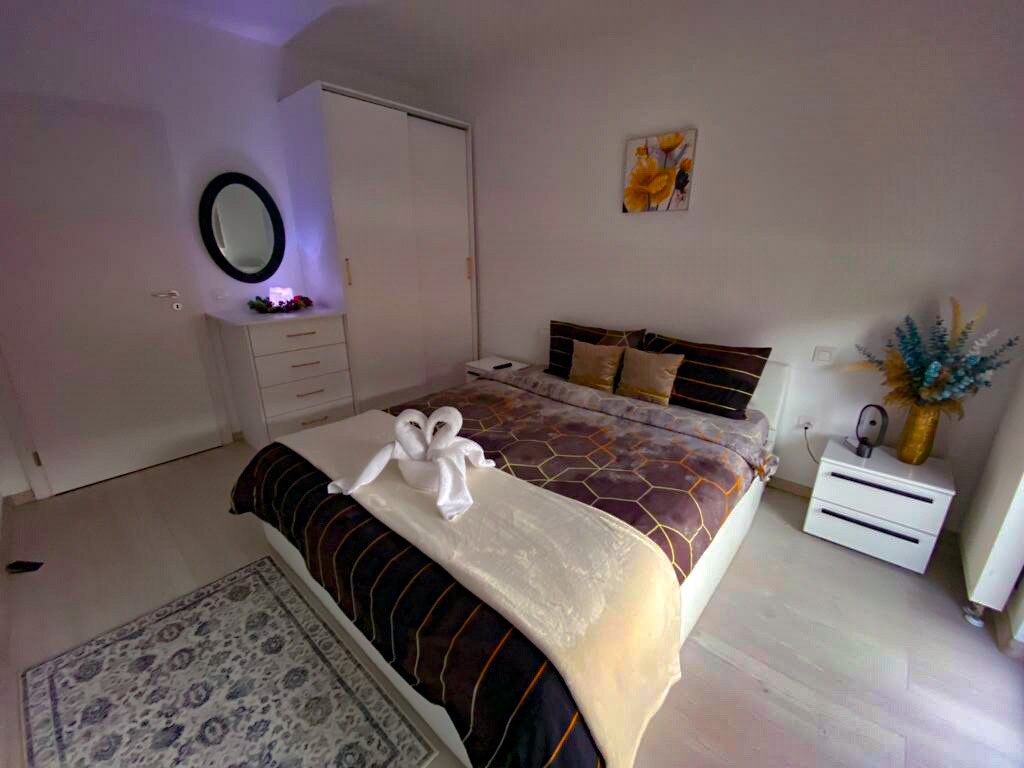 Apartamentul este compus dintr-un dormitor cu pat matrimonial și un living dotat cu canapea extensibilă. Oaspeții beneficiază de Smart TV cu Netflix inclus. Baia este echipată cu duș, iar bucătăria este complet utilată. În apartament veți mai găsi uscător de păr, fier de călcat și masă de călcat, precum și prosoape și lenjerie curate. De asemenea, sunt disponibile papuci de casă de unică folosință.. Apartamentul este situat la etajul 4 și este dotat cu aer condiționat.