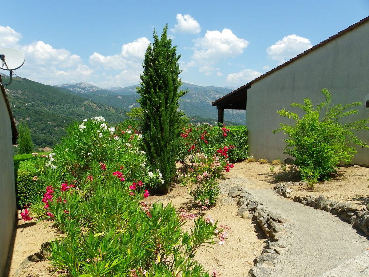 Ի սրտում Corse Regional Natural Park, շալե տուն վերեւում բնորոշ գյուղի համար հագեցած 1 - ից 4 մարդ, հանգիստ եւ հանգստանալու վայր հեռու զբոսաշրջային հոսքի ստորոտին շագանակ պուրակում, շատ գեղեցիկ unobstructed դիտարկումներ գյուղի լեռների, 50 մետր սկզբից հետիոտն արահետը լճերի եւ GR20, լող է գետի կամ ծովի