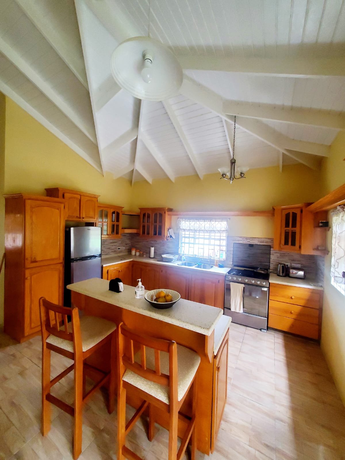 Մեկ սենյականոց բնակարան Գույավեի անաղմուկ հատվածում: Այս բնակարանն ունի 150 -179 սմ մահճակալ, իսկ հյուրը լիովին կարող է օգտվել խոհանոցից և լոգասենյակից ։ Բնակարանը գտնվում է երկրորդ հարկում, ունի երեք ննջասենյակ, բայց հյուրը կօգտագործի ննջասենյակներից միայն մեկը ։ Մեր տարածքում մնալու ընթացքում ոչ մի այլ հյուր չի զբաղեցնի մյուս ննջասենյակները ։ Քնեք օվկիանոսի թարմ քամիներով և արթնացեք օվկիանոսի տեսարանով ։ Տրանսպորտը, շոփինգը, ռեստորանները և հայտնի Gouyave Fish Friday փառատոնը միայն քայլում են հեռավորության վրա: