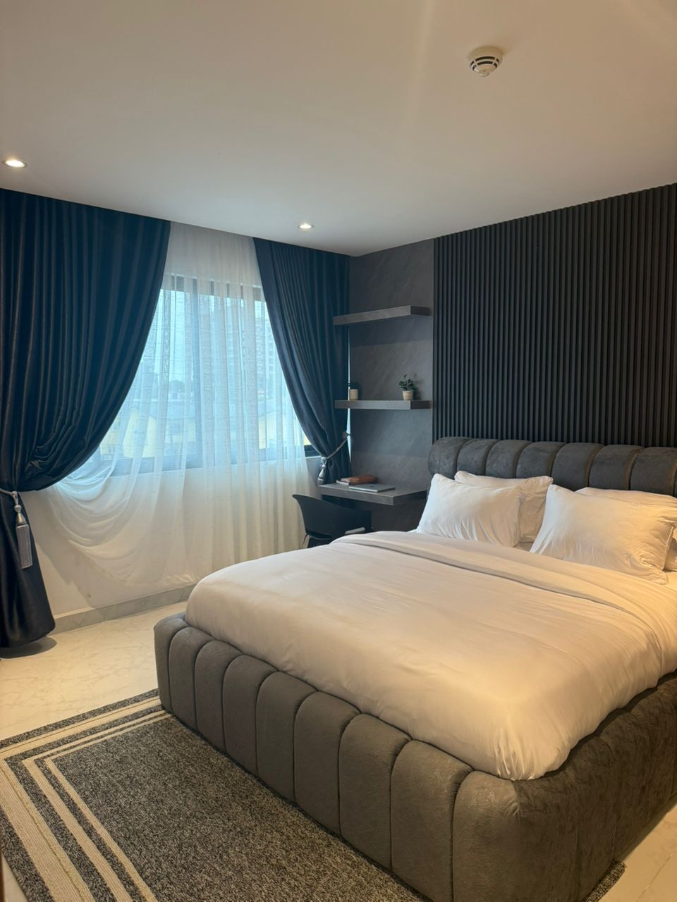 Welcome to your modern luxury haven in Ikoyi. The spacious living area features chic décor, plush seating, and a 75” Smart TV perfect for leisure and relaxation with fast, reliable WiFi. Guests enjoy access to premium on-site amenities, including a pool, gym, café and executive lounge. Each bedroom offers a private DSTV decoder for personalized entertainment. A dedicated workspace is also available for productivity. Enjoy 24/7 power and security, plus daily complimentary housekeeping.
