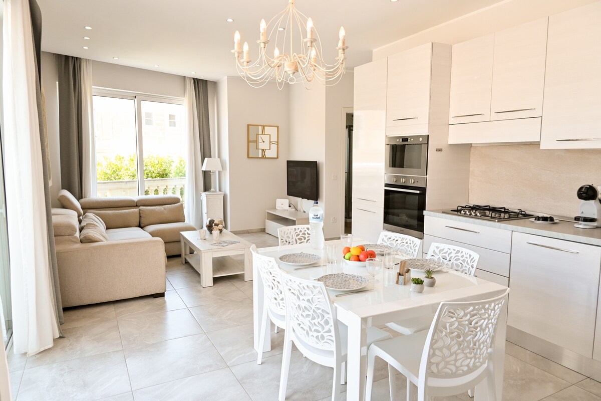 Kick back and relax in this calm, stylish space. We offer a brand new Penthouse with a private jacuzzi in Xemxija, next to of the most beautiful Bays of the Island (Golden Bay, Paradise Bay, Gozo Ferries and Cumino). The Penthouse has a large living room/kitchen with a front balcony seafront, 1 double bedroom, and 1 with 2 single beds, with air condition, wi-fi, smartTV. It's on the top Floor, with a lift. Towels and linen are included, Toaster, Hair dryer, coffee maker. NO WASHING MACHINE!