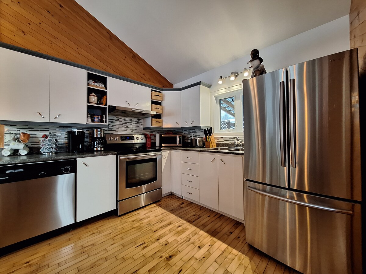 CITQ 227835 Beau cottage 4 saisons, dans un boisé, bord de rivière.Rive-sud de Québec à 30 min. des ponts. 2 min. des services. Grande chambre lit queen + un divan lit aussi divan lit au salon. Peut loger 4 adu + enfants. Tous inclus, wifi. Animaux acceptés. Beautiful cottage, Riverside. South shore of Quebec City 30 min from bridges. 2 min of services. Large bedroom queen bed + sofa bed as well as a sofa bed in the living room. Can accomodate 4 adults & children. Pets are welcome