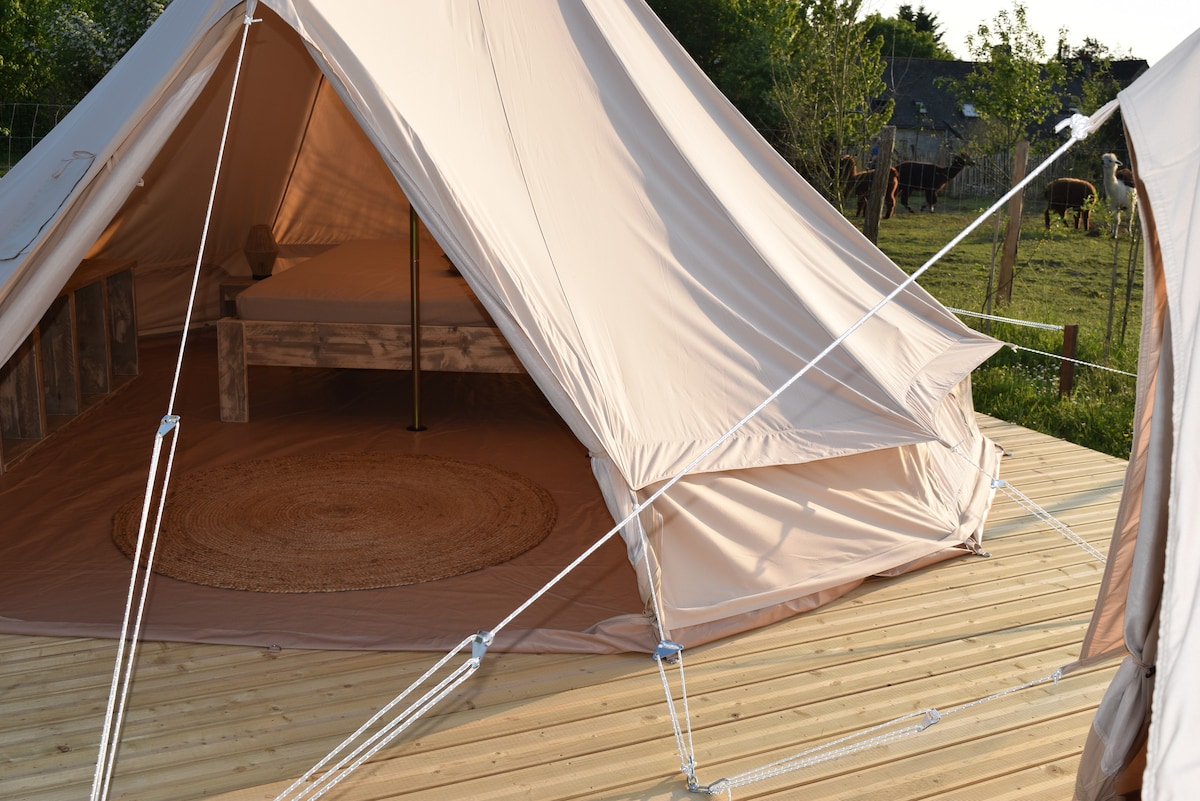A really special and comfortable tent, for a very pleasant stay! Come to us to spend a quiet romantic time. Glamping La Fraventure is located just 7 minutes from Lac de Sidiailles. Swimming, tree climbing, giant zip lines, pedal boats, canoeing, hiking, climbing... Included: private dry toilet, private eco shower, wifi, shared kitchen and shared bathroom, trampoline, swimming pool On request: Breakfast at €10/pp (min 2 pers), cot, extra small matras, pasta, sometimes barbecue