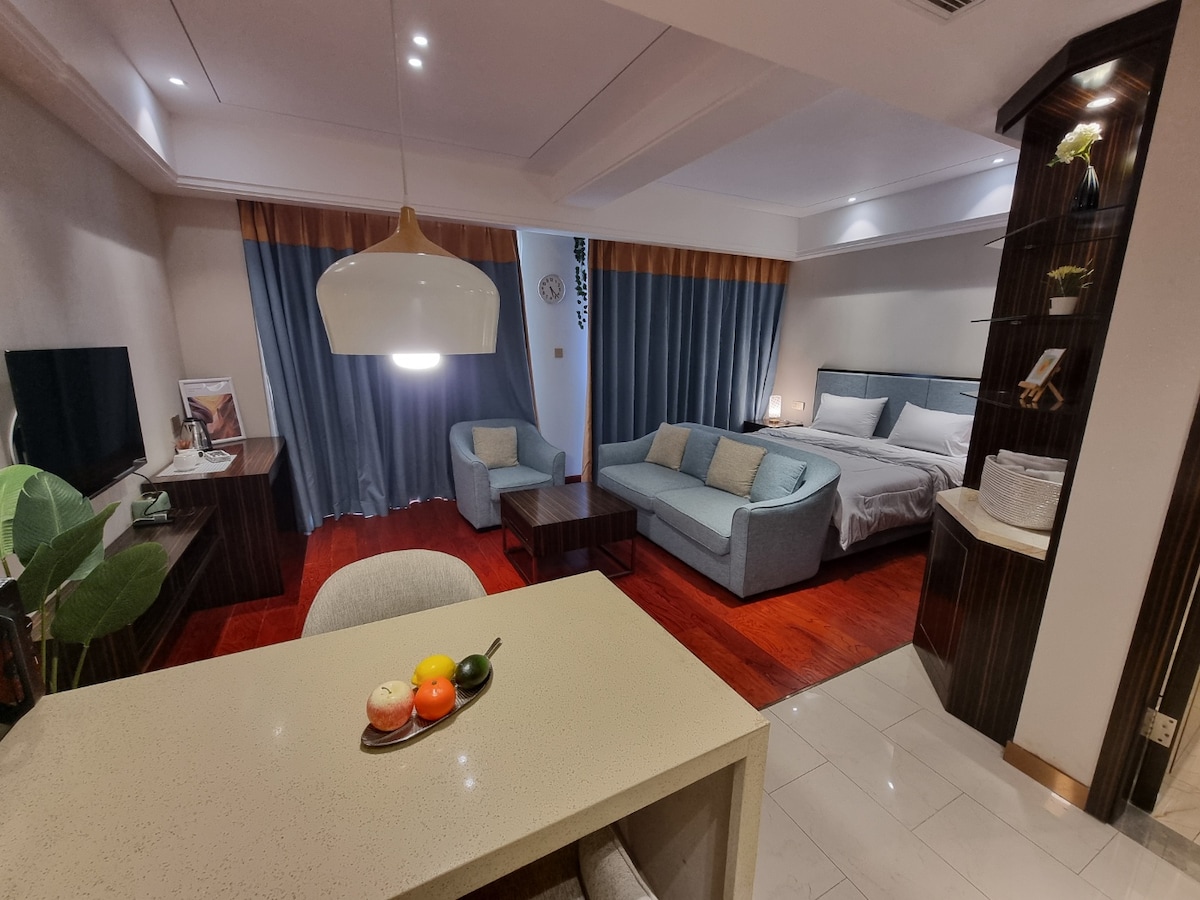 Stay in the heart of Vientiane at this stylish, brand-new apartment located in Laos’ top shopping mall. Whether you're working or unwinding, the private balcony bar offers a front-row seat to stunning sunsets. With high-speed Wi-Fi, cozy premium bedding, and refreshing air conditioning, you’ll feel right at home. Safe, clean, and perfect for those who want to explore the city and return to comfort. Experience Vientiane’s vibrant energy, then relax in peace and style.