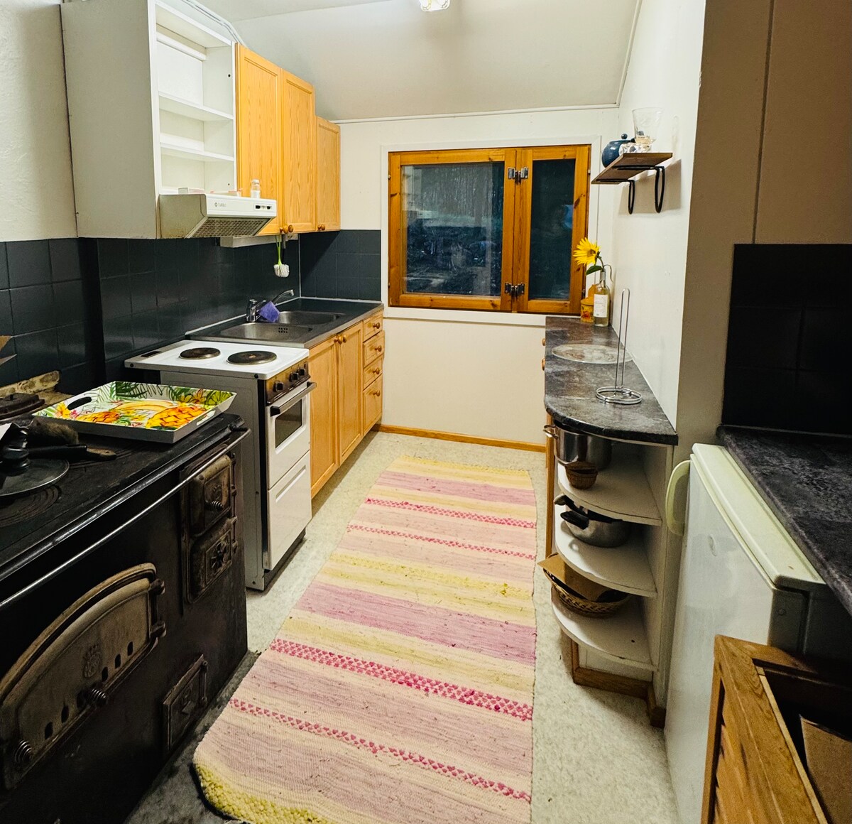 Omaa rauhaa 40 neliön pikkukodissa. Valmiit vuoteet ja pimennettävät huoneet. Mökkiä voit viilentää tai lämmittää. Pihasaunassa lämmin suihku ja valmiit polttopuut kiukaan lämmitykseen. Keittiössä voit valmistaa omia aterioita. Kaikkiin toimintoihin hyvät ohjeet. 2huonetta, 2WC:tä ja 2TV:tä. Lemmikkimaksu 20€. Helppo lähtösiivous=vain omat jäljet pois. HUOM: Lemmikkitalous, puulämmitys ja vanha mökki voivat aiheuttaa oireita herkille. Portaat ja epätasainen piha voivat hankaloittaa liikuntaa :(