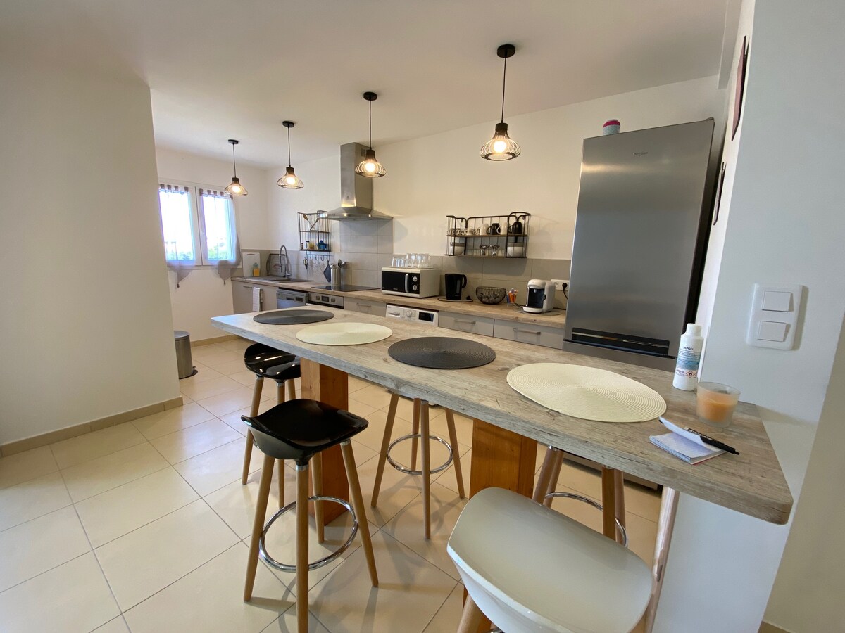 ծովից 5 րոպե հեռավորության վրա գտնվող փոքրիկ գյուղի հանգստությունը, գեղեցիկ համայնապատկեր ընդարձակ և շատ լավ կահավորված բնակարան վիլլայի առաջին հարկում շատ տեռասներ, որոնք պետք է մեկուսացվեն կամ միասին լինեն լողավազան ծովը քար է նետում դիակ ՝ (վերա)բացահայտելու համար ամեն ինչ անմոռանալի տոնի համար...