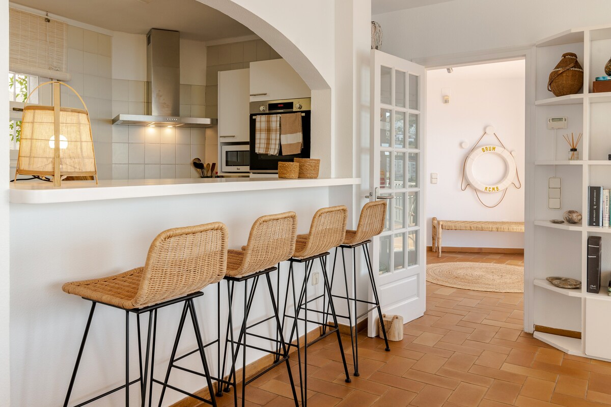 Իբիցյան ոճով, Գրիխեու լողափի մոտ, մասամբ բացվող օվկիանոսի և գեղեցիկ լեռների տեսարաններով, ֆանտաստիկ խորշերով, տնից հինգ րոպե հեռավորության վրա, արտոնյալ միջավայրում, անզուգական «Կամի դե Ռոնդայի» կողքին, որը սահմանակից է Կոստա Բրավային, եզակի բնապատկերի մեջ, որտեղ Պիրենեյները մտնում են ծովը, և դուք կարող եք զբաղվել ջրային սպորտի բոլոր տեսակներով բյուրեղյա մաքուր ջրերում, Գրիխեուի խաղաղ զարգացման մեջ, Պորտ դե Լյանչայից 1 կմ հեռավորության վրա։